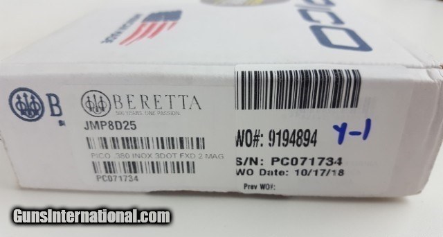 Description: Beretta Pico .380 Inox 3 Dot JMP8D25 - Used SOLD |