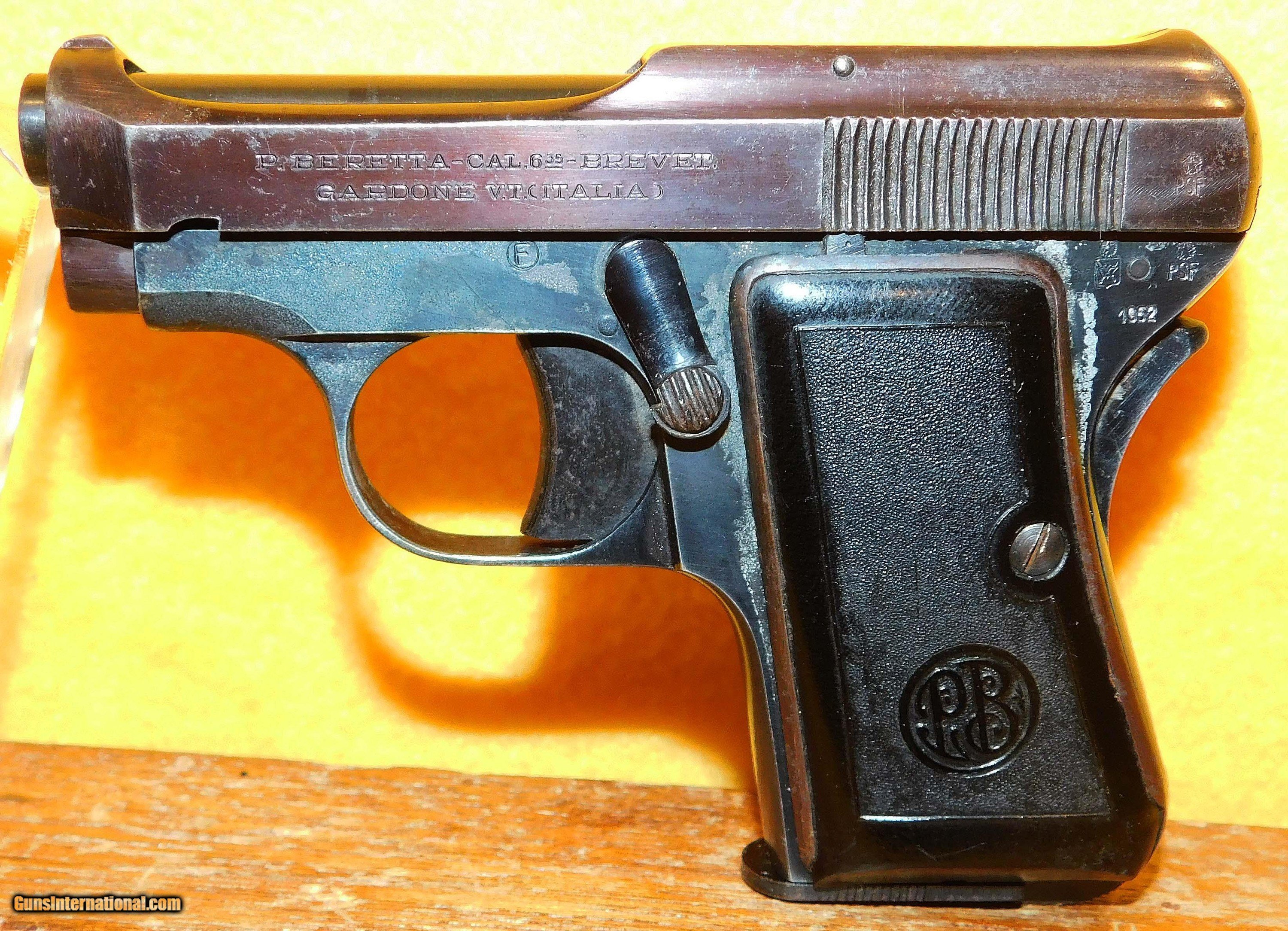Description: BERETTA POCKET (1952) IN .25 ACP CAL., WITH 2 1/4" BARREL. COLOR BLUE. CONDITION 70%. SERIAL NUMBER 64197A. BERETTA MODEL POCKET (1952) IN .25 ACP CALIBER, BRIGHT BORE, GRIPS VERY GOOD, COMES WITH ONE FACTORY MAGAZINE, 70% OVERALL CONDITION, OUR STOCK # D2388 SOLD |