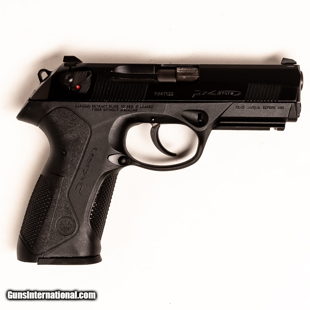 Description: Guns Listing ID: 616352 Based on the dependable design of the Cougar the Beretta PX4 Storm Full is a reliable full size semi-automatic handgun made to meet military standards. Ergonomics contribute to comfort while interchangeable parts and the Picatinny rail make it easily customizable. Reversible controls make this pistol ambidextrous while the modular design and clean lines ensure smooth snag-free unholstering and re-holstering. Available in a range of finishes sizes and calibers the PX4 Storm Full is a suitable duty weapon recommended for home and self-defense and a reasonable option for full size concealed carry. Details Action DASA - Caliber 9mm - Capacity 17rd - Barrel 4 - Sights 3-Dot - Frame Polymer Black - Slide Steel Bruniton Finish - Safety Manual Ambidextrous - Length 7.55 - Width 1.42 - Height 5.51 - Weight 27.7 oz - Commander-Style Hammer - Ambidextrous Safety - Automatic Firing Pin Block - Interchangeable Backstraps - Drop-Free Magazine - Reversible Magazine Release - Picatinny Rail - 3-Dot Sight System - Perfect for home or personal defense as well as concealed carry the PX4 was designed to be ultra-reliable. Also its rotary barrel design reduces felt recoil and muzzle jump while the cold-hammer forged barrel delivers exceptional accuracy. Easy to use disassemble and maintain as well as superbly ergonomic the PX4 sets the standards for todays tactical semiauto pistol. SOLD Manufacturer: BERETTA Model: PX4 STORM Caliber Info: 9MM LUGER (9X19 PARA) Condition: Used - Certified Barrels: 4 barrel Finish: BLACK |