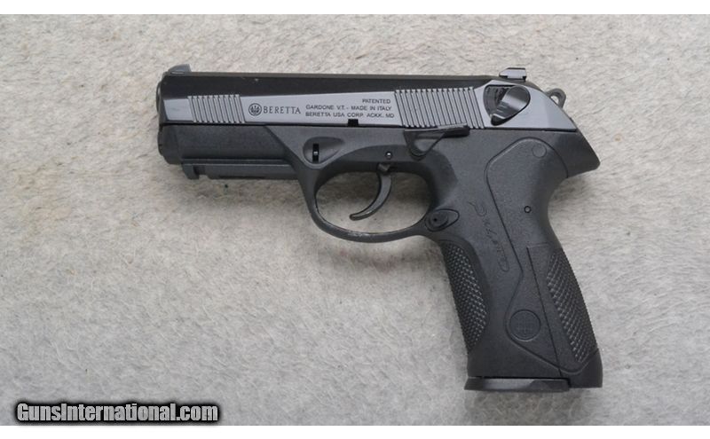 Description: This Beretta Model PX4 Storm is a right hand double action semi-auto pistol in .40 S&W Cal. It has a 4 inch barrel with a front and rear serrated slide. A blade front sight and notch rear sight with 3 white sight dots. The grip is a textured black polymer with interchangeable backstraps. It has a lower accessory rail and an ambidextrous safety. .40 S&W SOLD Chambers: 14 round magazine. Metal Condition: Excellent. A couple of minor handling marks on the slide left side. Bore Condition: Excellent. Barrels: 4 inch barrel with a front and rear serrated slide. Triggers: SA/DA Weight: 30 Oz. Sights: Blade front. Notch rear. 3 white sight dots. Item Location: Richfield, WI |