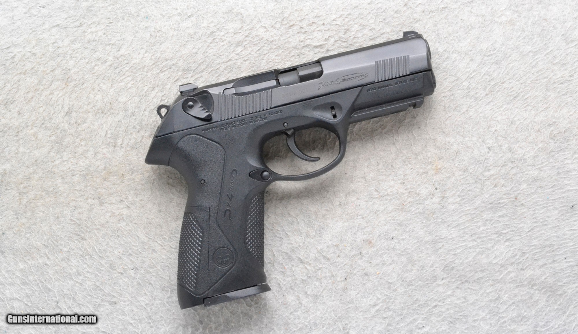 Description: This Beretta Model PX4 Storm is a right hand double action semi-auto pistol in .40 S&W Cal. It has a 4 inch barrel with a front and rear serrated slide. A blade front sight and notch rear sight, both with white sight dots. The grip is a textured black polymer. It has a lower accessory rail. .40 S&W SOLD Chambers: 14 round magazine. Metal Condition: Excellent. Bore Condition: Excellent. Barrels: 4 inch barrel with a front and rear serrated slide. Triggers: DA/SA Weight: 28 oz. Sights: Blade front. Notch rear. White sight dots. Item Location: Richfield, WI |