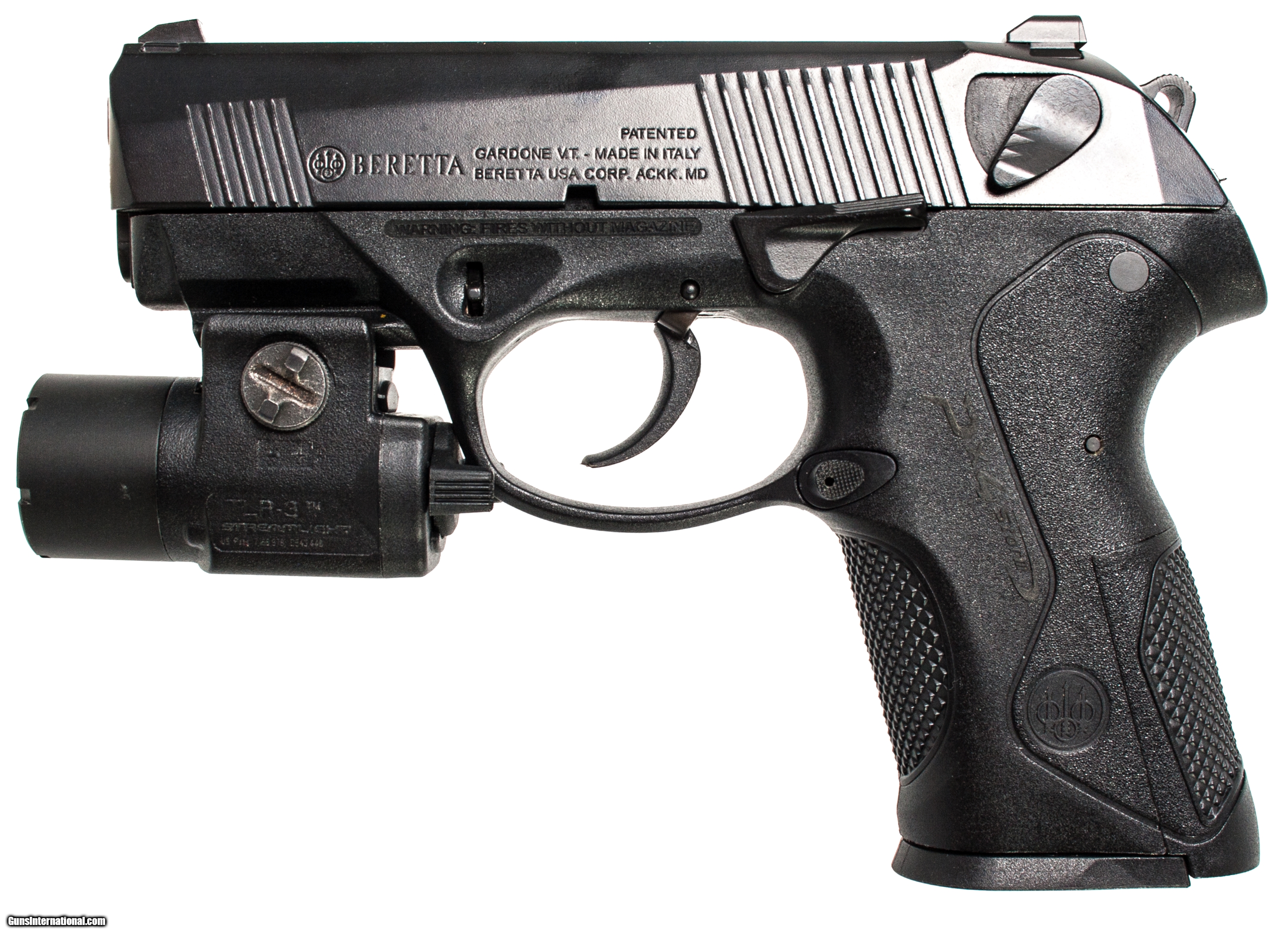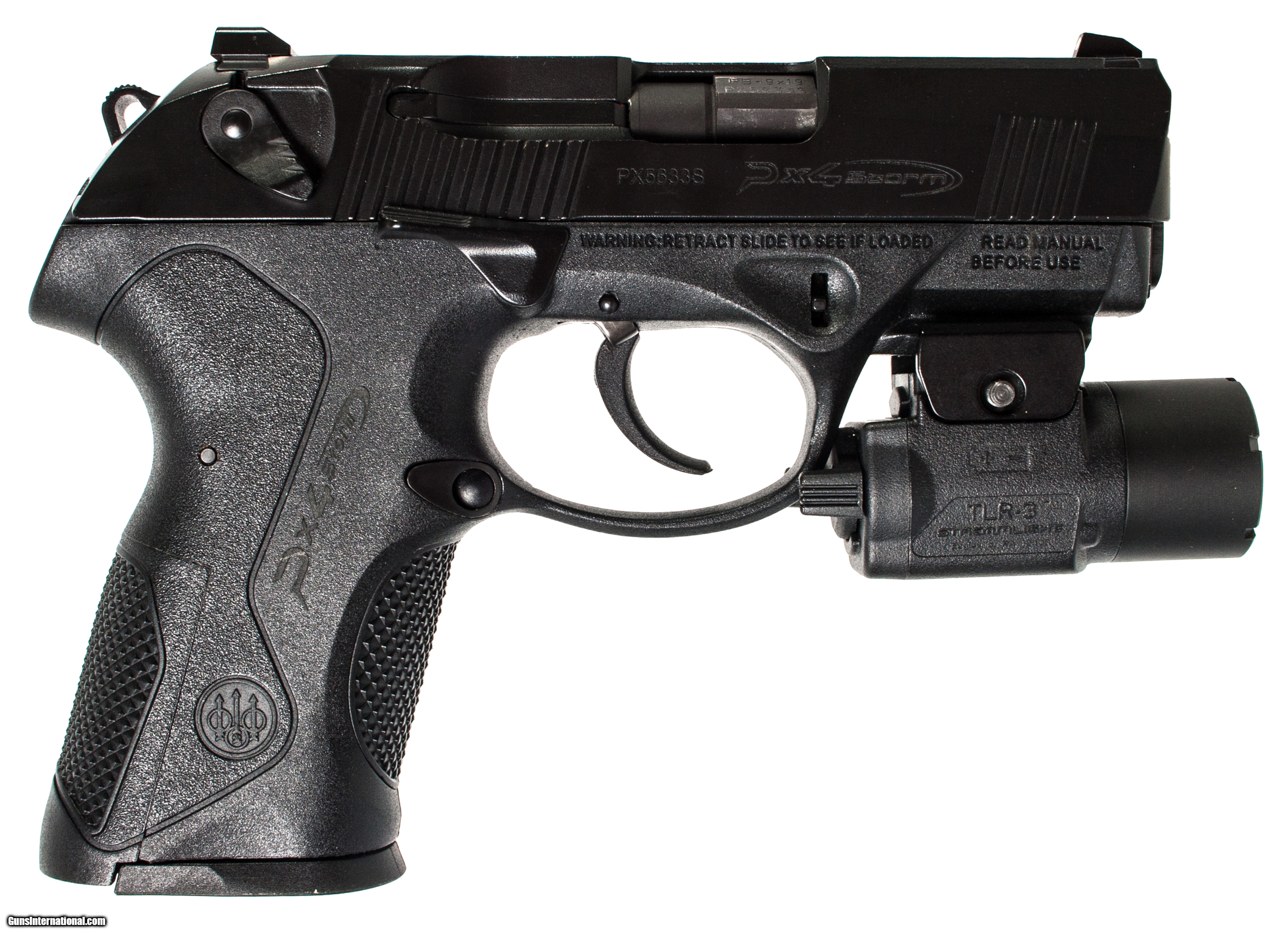 Beretta PX4 Storm chambered in 9 mm with a 3.5 inch barrel a case and a TLR-3 Streamlight. This gun is in excellent condition and is covered by Dury's Lifetime Warranty.