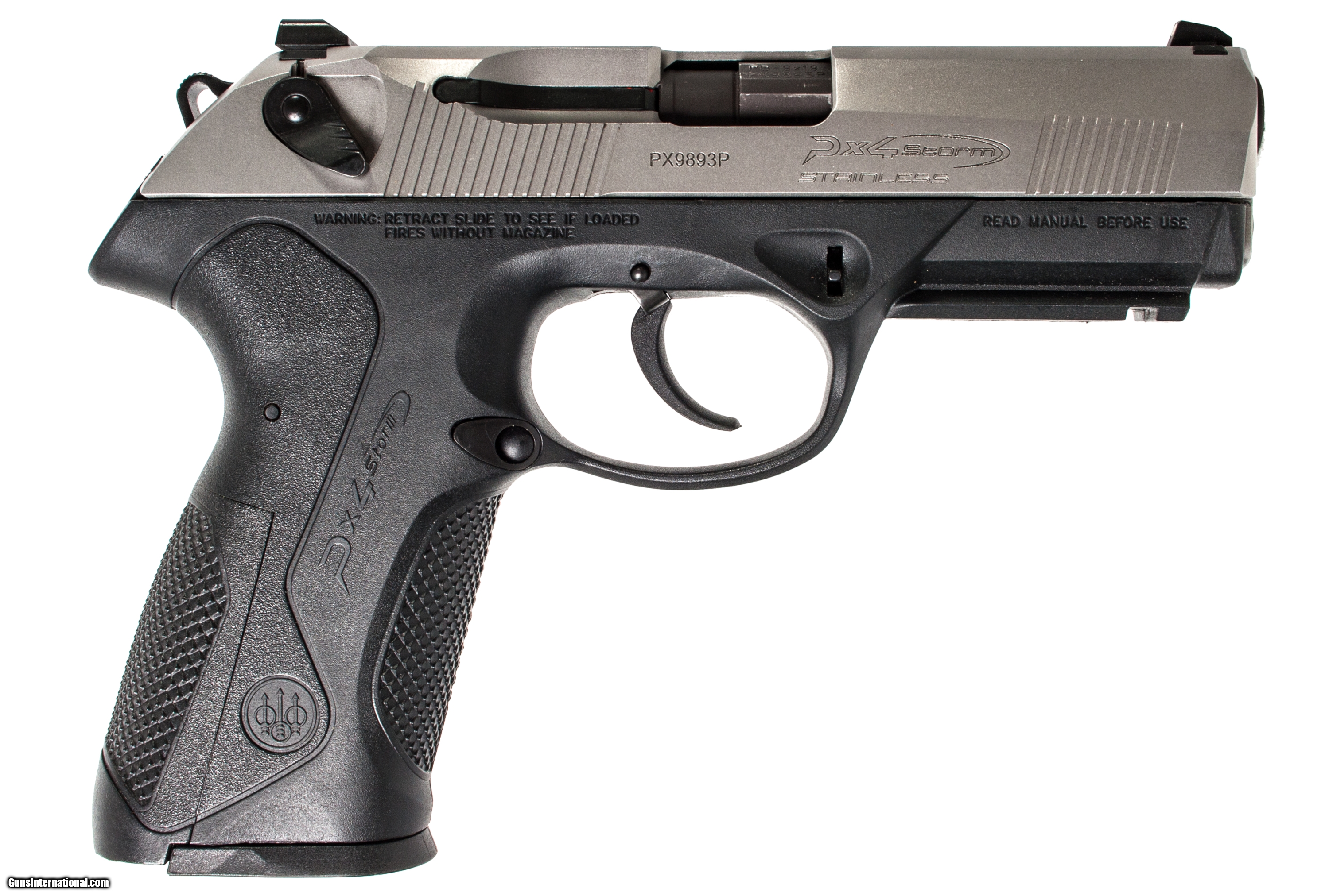 Beretta PX4 Storm chambered in 9 mm with a 4 inch barrel and stainless steel slide. This gun is in excellent condition and is covered by Dury's Lifetime Warranty.