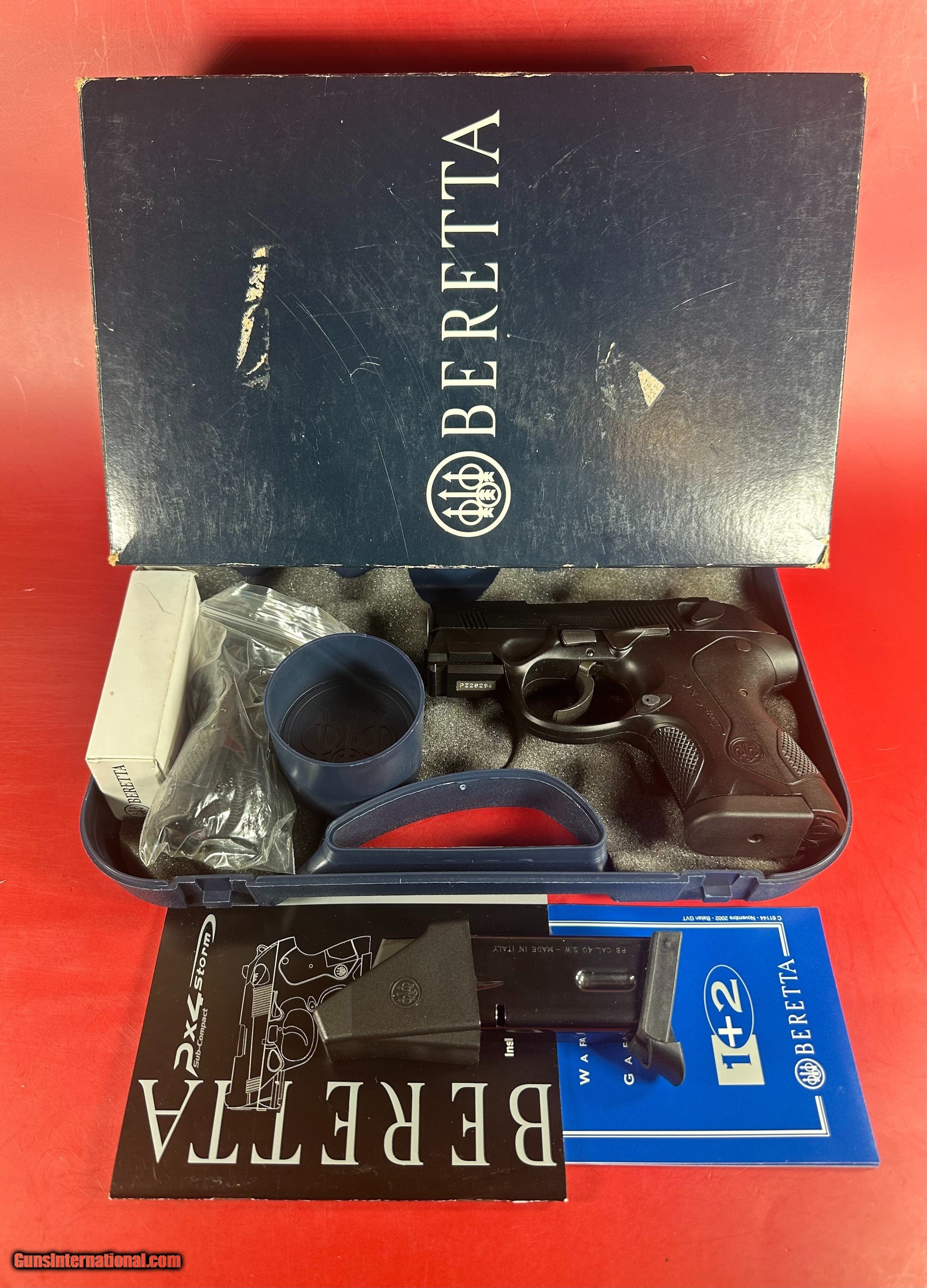 Description: Rare Subcompact Beretta PX4 Storm chambered in 40 S&W. Excellent condition, just like new. It is equipped with 3 inch barrel, 3-dot sights, double/single action trigger with ambidextrous safety/decocker and adjustable grip. It comes with one 10 round magazines with foldable finger extension base plate, one 10 round standard base plate magazine. Sale includes original case, sleeve serialized to the gun, original paperwork, two extra backstraps, safety lock and 2 magazines with speed loader. Amazing handgun for concealed carry. Legal even in magazine restricted states. Great addition to any collection too. SPECIFICATIONS