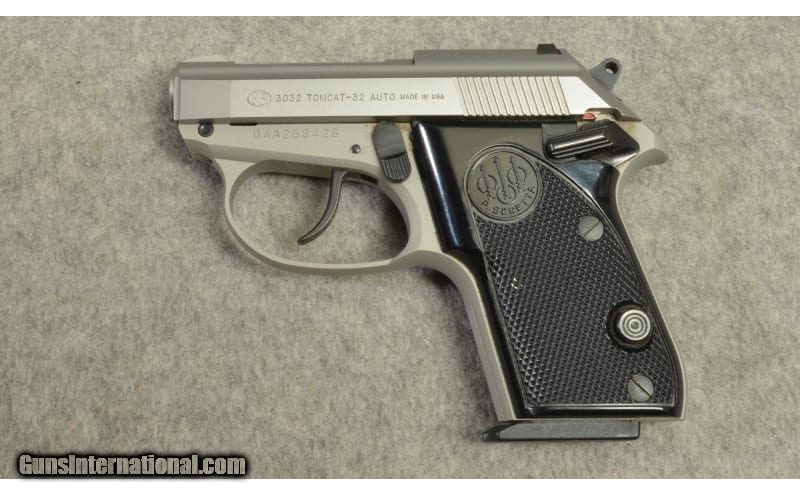 Description: For your consideration, the Beretta 3032 Tomcat semi-auto pistol chambered in .32 Auto. Small and boasting a 7 round capacity this pistol can fire from other single or double action. The barrel tips up making it easy to load the chamber for carrying and also easy to clean without having to disassemble the firearm. .32 Auto SOLD Metal Condition: Excellent Bore Condition: Excellent Barrels: 2.4 inch Weight: 14.5 oz Item Location: Centerville, OH |