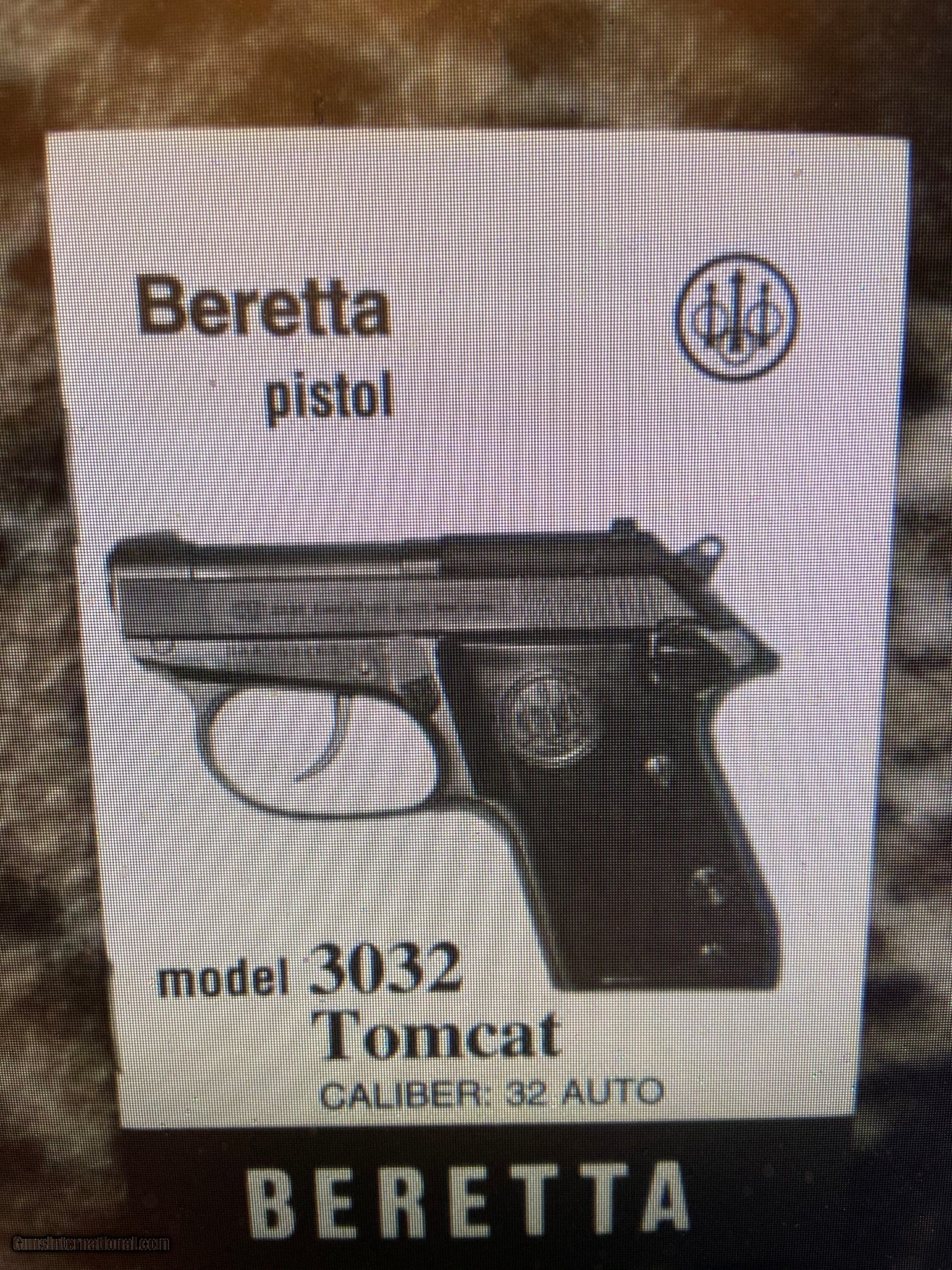 Description: This Beretta is an older model made in USA exactly to Beretta's spects. Gun fired one box of 50 rounds and shows no wear. Comes with original owners manual. If it was not shot it would be considered to be in 100%.Call Sandy 305 342 2768 SOLD Manufacturer: Beretta Model: Tomcat 32 (3032) Serial Number: DAA346185 Caliber Info: 32 Condition: 99% Metal Condition: 99% Bore Condition: 99% Item Location: Fl. |