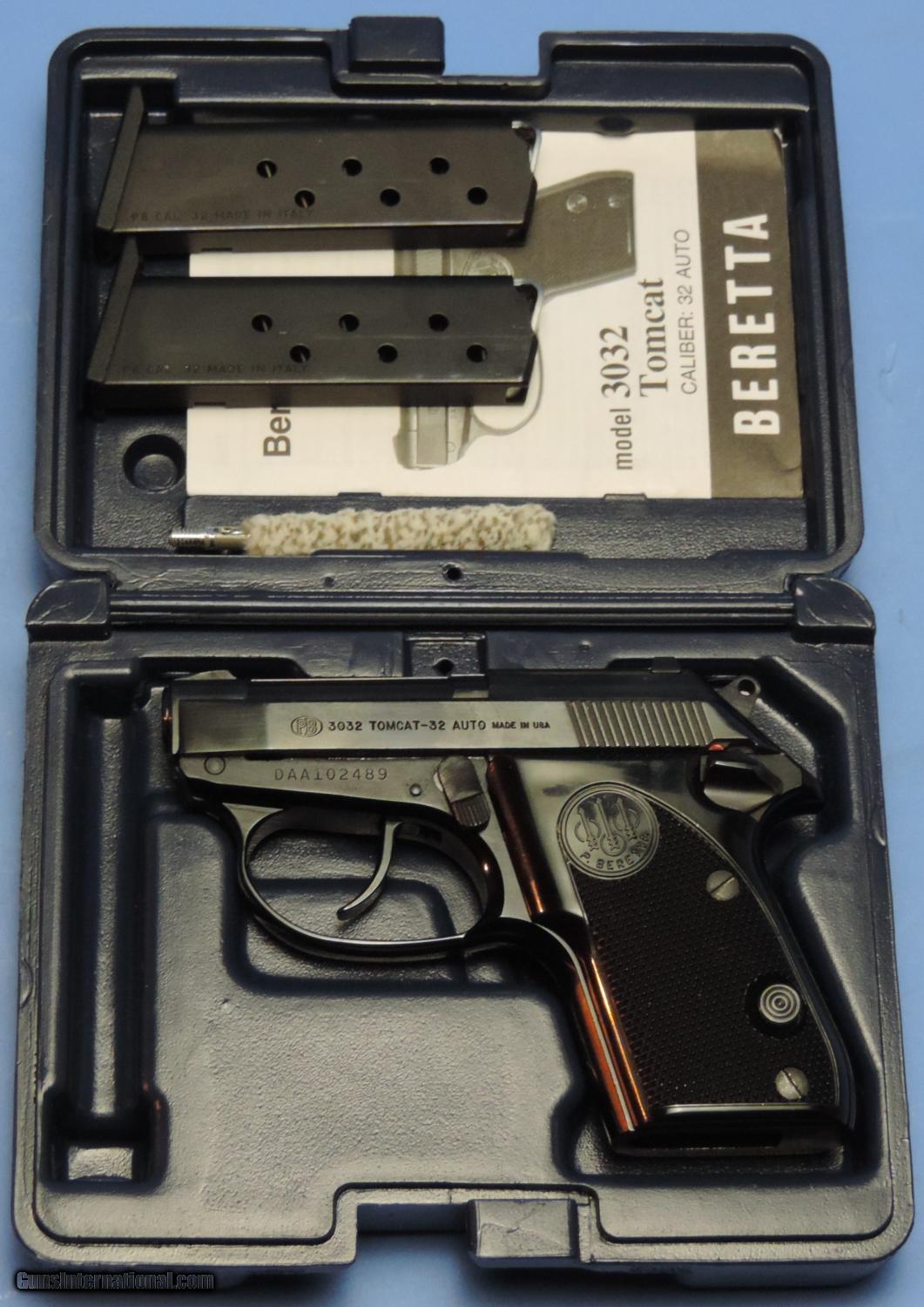 Description: Beretta Tomcat Model 3032, Caliber .32 ACP, Serial Number DAA 1024XX. Bet you that you can't beat this offer. From an estate collection. A double action Beretta that appears to be un-fired in almost flawless condition. There is a tiny surface scratch about 1/4 in length on the front grip strap. That's it. Other than that the gun is mint. That includes the feed ramp, the bolt face and naturally the bore. This little Tomcat would be an ideal pocket or purse blaster. Ideal for that lady in your life. The gun comes with the original Beretta plastic box, instruction booklet, cleaning swab, and 3 original Beretta magazines. $495. To purchase this firearm or if you want to request more information contact us at: Email ckgunsymail Phone 201-512-0002 Cell 201-575-6838 FAX 201-215-4759 We accept most major credit cards. Prices shown are Discounted 3% for Cash or Check. The buyer must be familiar with all the laws governing the purchase and the ownership of firearms in their own city and state. The Yankee Armorer, Inc is not responsible for any failure to comply with or observe these laws. The Yankee Armorer, Inc will only ship after full payment and receipt of all required documents. Shipping: Add $35.00 for handguns, $45.00 for long guns. New Jersey buyers are subject to a 7% sales tax. The Yankee Armorer, Inc offers a 3 day inspection period with full refund upon return of intact firearm and in the original condition. The Yankee Armorer, Inc offers a no interest lay away program - 25% down; 25% in 30 days; 25% in 60 days; and full payment in 90 days. Any violation of this policy is subject to restocking and forfeiture of all payments. Any variation from this policy must be agreed to in advance. Unshipped Cancelled sales are subject to a 20% restocking fee. Be advised that all firearms sold by The Yankee Armorer, Inc. or the Gun Exchange, LLC (SELLER) are sold as collector’s items. They have not been fired or tested for safety and must be examined by a license gunsmith prior to use. By purchasing any item from the (SELLER), you are agreeing to hold the (SELLER) free from any damages or lawsuits of any nature. Any item left for transfer or storage will be charged to $25.00 per month, per item from the day of its receipt. Any variation from this policy must be agreed to in advance. Store hours 10:00 am to 5:00 pm Tuesday -Saturday. It's always best to call for appointment. Store 201-512-0002, cell 201-575-6838. SOLD |