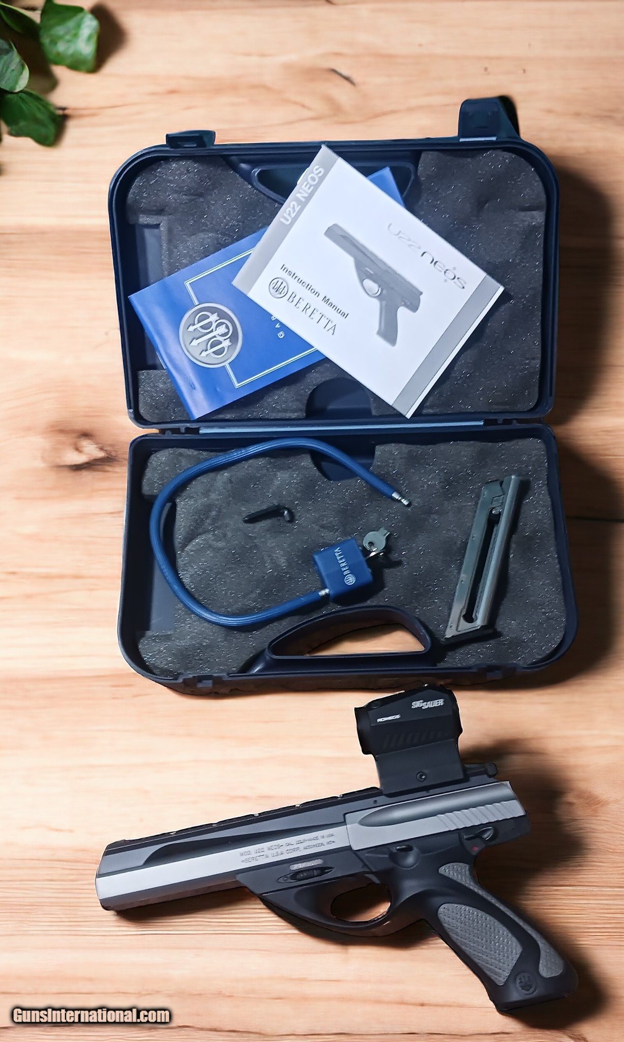 Description: Guns Listing ID: 1265765 For sale is a Beretta Model U22 Neos, in excellent condition. This semi-automatic pistol is known for its unique design, reliability, and performance. The Beretta U22 Neos is a .22 caliber pistol that features a distinctive modular design, a single-action firing mechanism, and a user-adjustable sight system. It’s a favorite among target shooters for its accuracy and ease of use. Despite being pre-owned, this pistol is in excellent condition, showing minimal signs of use. It has been meticulously maintained and cared for, ensuring it remains in top operating condition. The minor imperfections do not detract from the overall appearance or functionality of the firearm. The U22 Neos is a versatile pistol, suitable for both target shooting and plinking. Its balanced weight and smooth action make it a pleasure to shoot, while its robust construction ensures it can stand up to the rigors of regular use. Please refer to the actual photos of the item to get a better idea of its condition. This Beretta Model U22 Neos could be an excellent addition to your collection or a reliable choice for your next shooting adventure. Comes with original box and paperwork! SOLD Manufacturer: BERETTA Model: U22 NEOS Caliber Info: .22 LR Condition: Used - Non-Certified Barrels: 6 BARREL Finish: STAINLESS & BLACK |