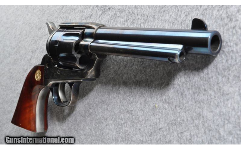Description: SOLD Caliber Info: .45 Colt Chambers: 6 round cylinder Metal Condition: Fire blued barrel and cylinder show a bit of holster wear at the edges and the cylinder exhibits a drag mark. The frame is case colored and appears to be in very good condition Wood Condition: Grips show a few small field marks mostly at the heel Bore Condition: Sharp & bright Barrels: 5 1/2 Triggers: Single Action Stock: Smooth walnut with Beretta medallions Weight: 38 oz Sights: Fixed blade front, Notched rear Extras: Factory box Item Location: Grand Junction, CO |