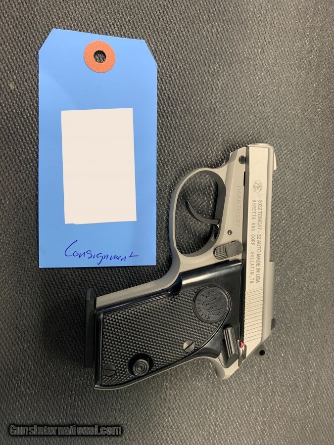 Description: Guns Listing ID: 538200 The 3032 Tomcat offers all the features of the 21 Bobcat, adding a wide slide and a contoured tang to protect the thumband increase pistol control. The snag-proof design and slide blade front sight permit quick presentation and fast target acquisition followed by smooth, crisp trigger pull in double/single action. The tip-up barrel allows direct chamber loading and safe clearing of the pistol. Jamming and stovepiping problems are virtually eliminated by the open slide design shared by all small frame Berettas. The Tomcat‚‚s barrel is forged from special high-strength steel; precisely rifled for accuracy. It has a black finish. The Inox Tomcat model has a stainless steel slide and barrel with an exceptionally corrosion-resistant and durable gray-anodized frame to match the color and finish of the stainless components. The trigger, hammer, safety, magazine and other metal parts are blued SOLD Manufacturer: BERETTA USA Model: 3032 TOMCAT Caliber Info: .32 ACP Condition: Used - Non-Certified Barrels: 2.40" barrel Finish: STAINLESS |