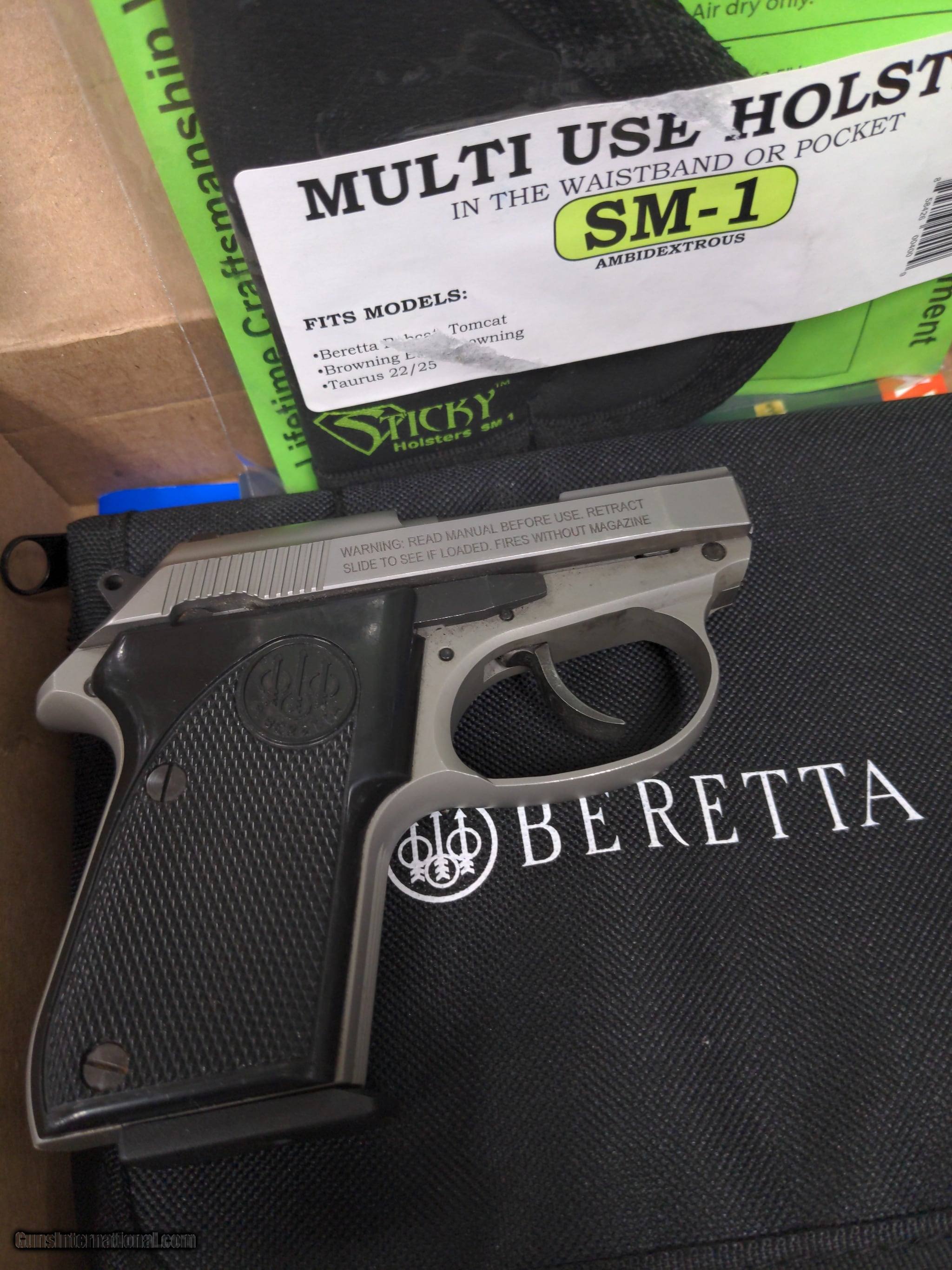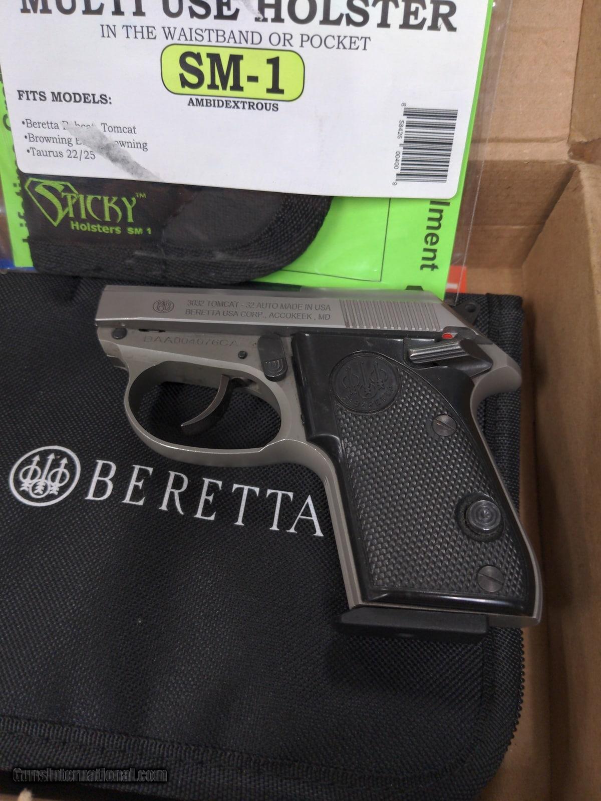 Description: Guns Listing ID: 372167 The 3032 Tomcat offers all the features of the 21 Bobcat adding a wide slide and a contoured tang to protect the thumband increase pistol control. The snag proof design and slide blade front sight permit quick presentation and fast target acquisition followed by smooth crisp trigger pull in double/single action. The tip up barrel allows direct chamber loading and safe clearing of the pistol. Jamming and stove piping problems are virtually eliminated by the open slide design shared by all small frame Berettas. The Tomcats barrel is forged from special high strength steel precisely rifled for accuracy. It has a black finish. The Inox Tomcat model has a stainless-steel slide and barrel with an exceptionally corrosion resistant and durable gray anodized frame to match the color and finish of the stainless components. The trigger hammer safety magazine and other metal parts are blued. SOLD Manufacturer: BERETTA Model: 3032 Caliber Info: 32 ACP Condition: new Barrels: 2.40" barrel Finish: STAINLESS |