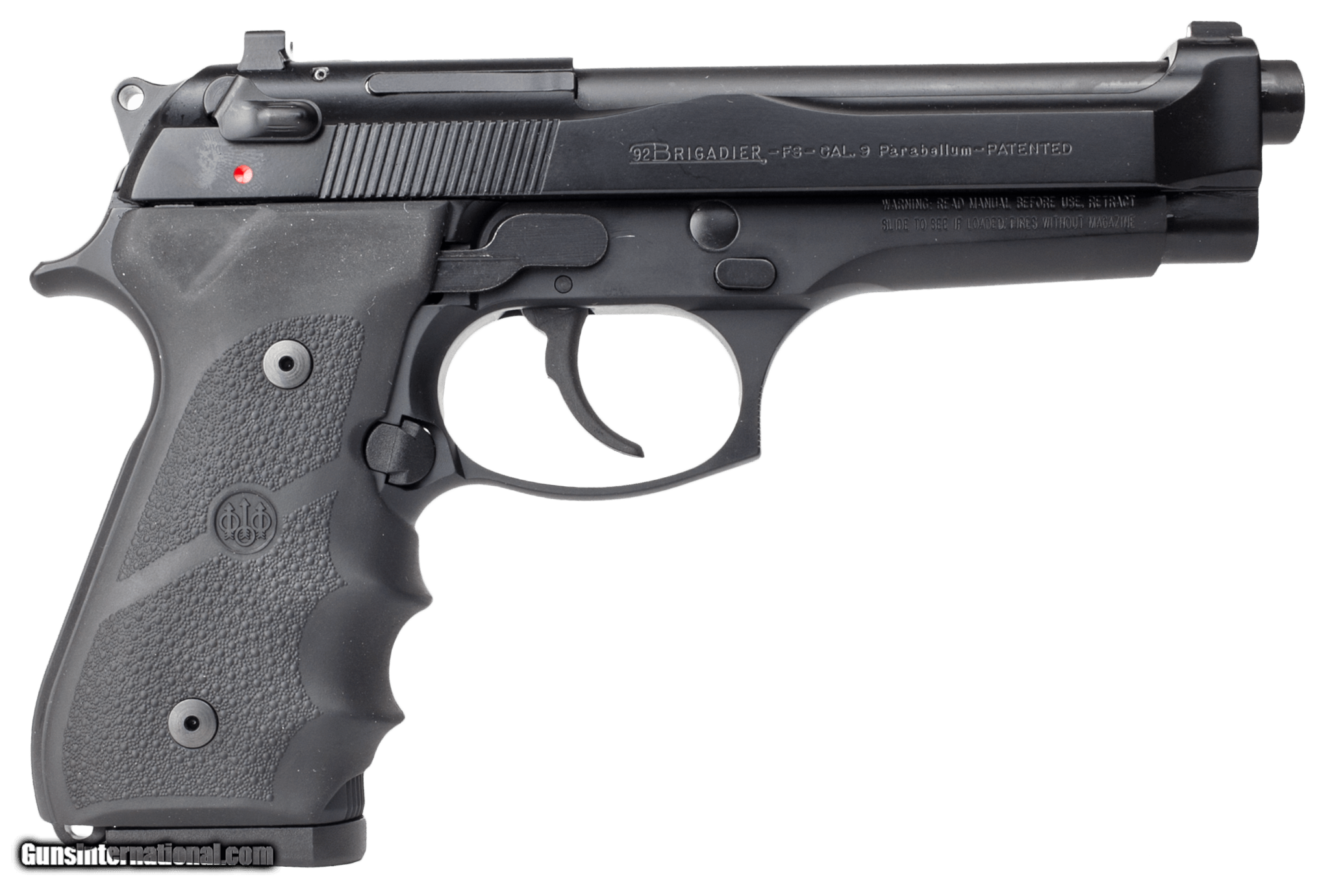 Description: Guns Listing ID: 49061 The Beretta 92FS Brigadier is designed to be a low recoiling high durability version of the standard 92FS M9 combat pistol. It is equally suited for home defense competition duty or concealed carry and more. Like the standard 92FS the 92FS Brigadier is a double/single action semi auto pistol that employs an open slide short recoil delayed locking block system which yields a faster cycle time and delivers exceptional accuracy and reliability. To minimize recoil the slide features a heavy profile which also enhances durability and the grips are Hogue soft rubber wraparound panels that greatly absorb the momentum of the pistol upon firing. Other important features of the 92FS Brigadier include dovetailed front and rear sights. This CA compliant model has a black frame and slide and 10 round magazine. SOLD Manufacturer: BERETTA Model: 92 FS Brigadier *CA Compliant Caliber Info: 9MM LUGER Condition: new Barrels: 4.90" BARREL Finish: BLACK |