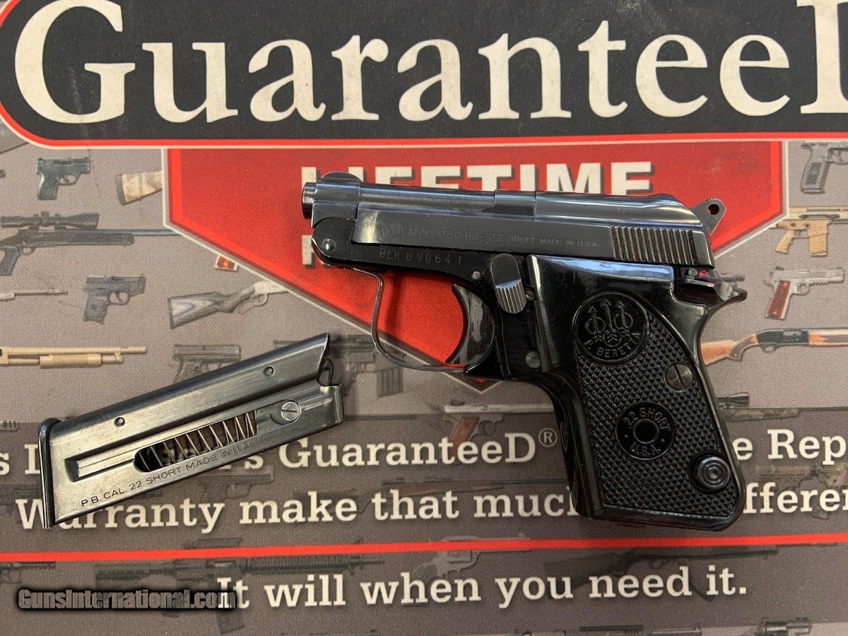 Description: Guns Listing ID: 486884 Signs of usage can be seen on the firearm. Only comes with the one magazine. Rifling is in great condition. Will comes in a plain shipping box. SOLD Manufacturer: BERETTA USA Model: 950 BS Caliber Info: .22 SHORT Condition: Used - Non-Certified Barrels: 2.25 BARREL Finish: BLACK |