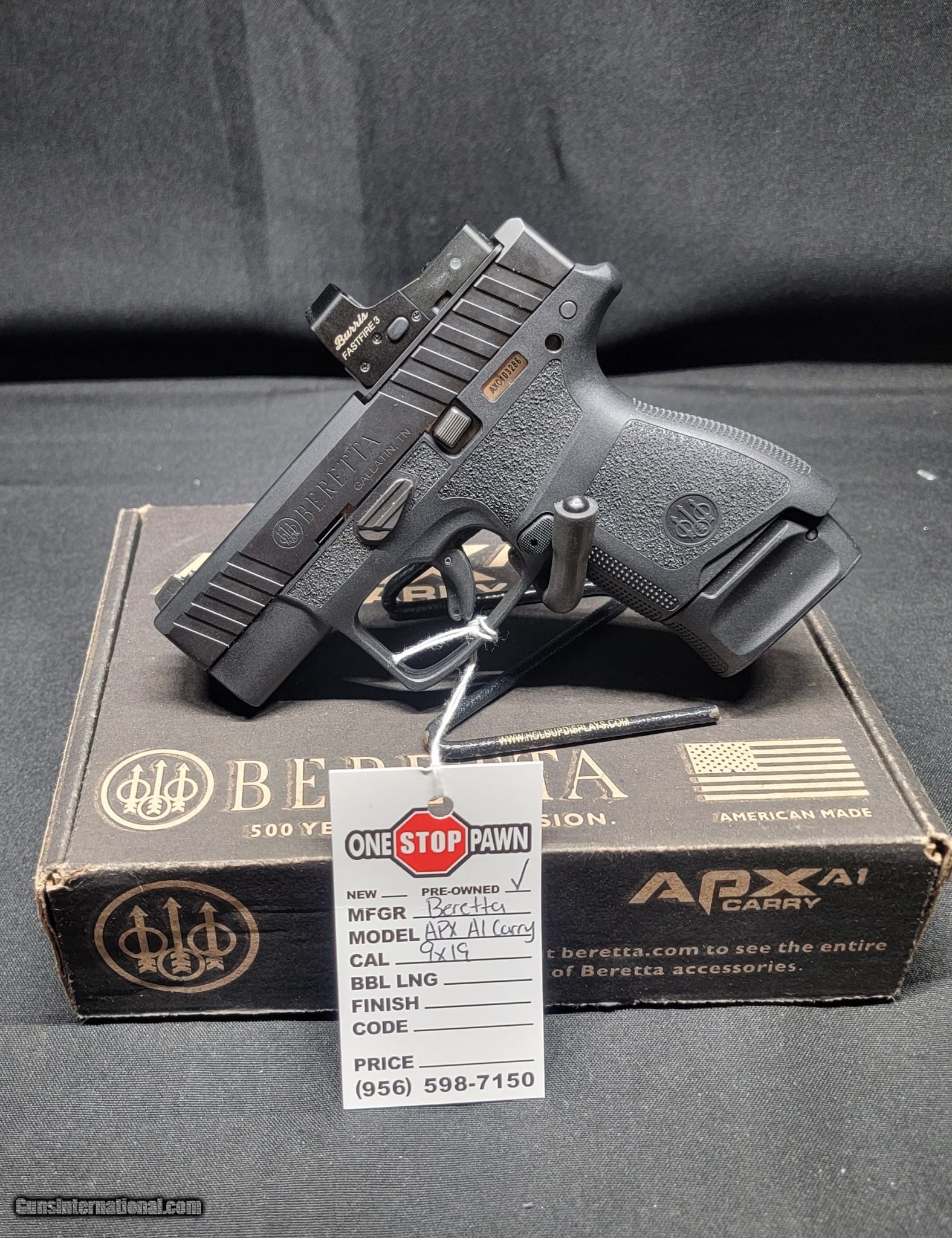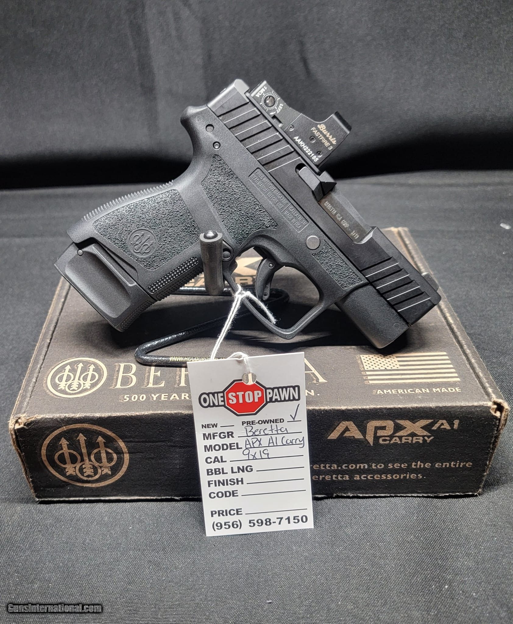 Description: Guns Listing ID: 469374 PRE OWNED IN ORIGNAL BOX 1 MAG TOTAL SOLD Manufacturer: BERETTA Model: APX A1 CARRY OPTIC Caliber Info: 9MM LUGER (9X19 PARA) Condition: Used - Non-Certified Barrels: 3 BARREL Action: STRIKER Finish: BLACK Weight: 1.2 LBS. |