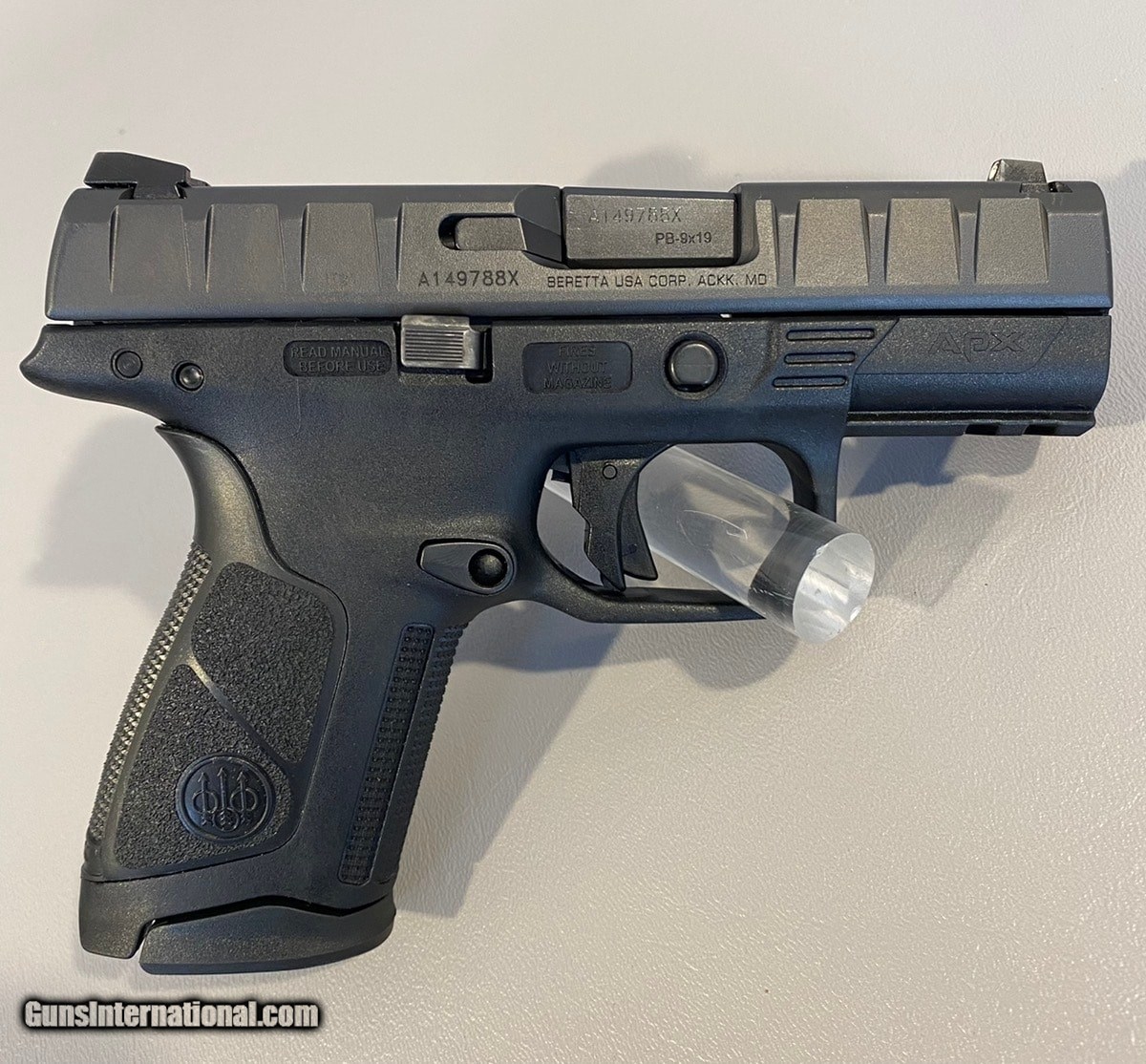 Description: Guns Listing ID: 512491 USED BUT LIKE NEW, BERETTA ARMS MODEL APX CENTURION. SEMI-AUTOMATIC, 9MM, BLUE, 3.7\" BARREL. WITH ORIGINAL BOX AND EXTRA MAG. DEALER SPECS/DESCRIPTION: Beretta APX Centurion JAXQ921 Striker Fired Semi Automatic Handgun 9mm Luger 15 Rounds 3.7\" Barrel Low Bore Axis Fixed Three Dot Sights Aggressive Slide Serrations Serialized Internal Chassis Polymer Frame Modular Grip Frame Housing Interchangeable Backstraps Ambidextrous Slide Stop Reversible Magazine Release Black SOLD Manufacturer: BERETTA Model: APX Centurion Caliber Info: 9MM LUGER Condition: Used - Non-Certified Barrels: 3.7" barrel Finish: BLACK |