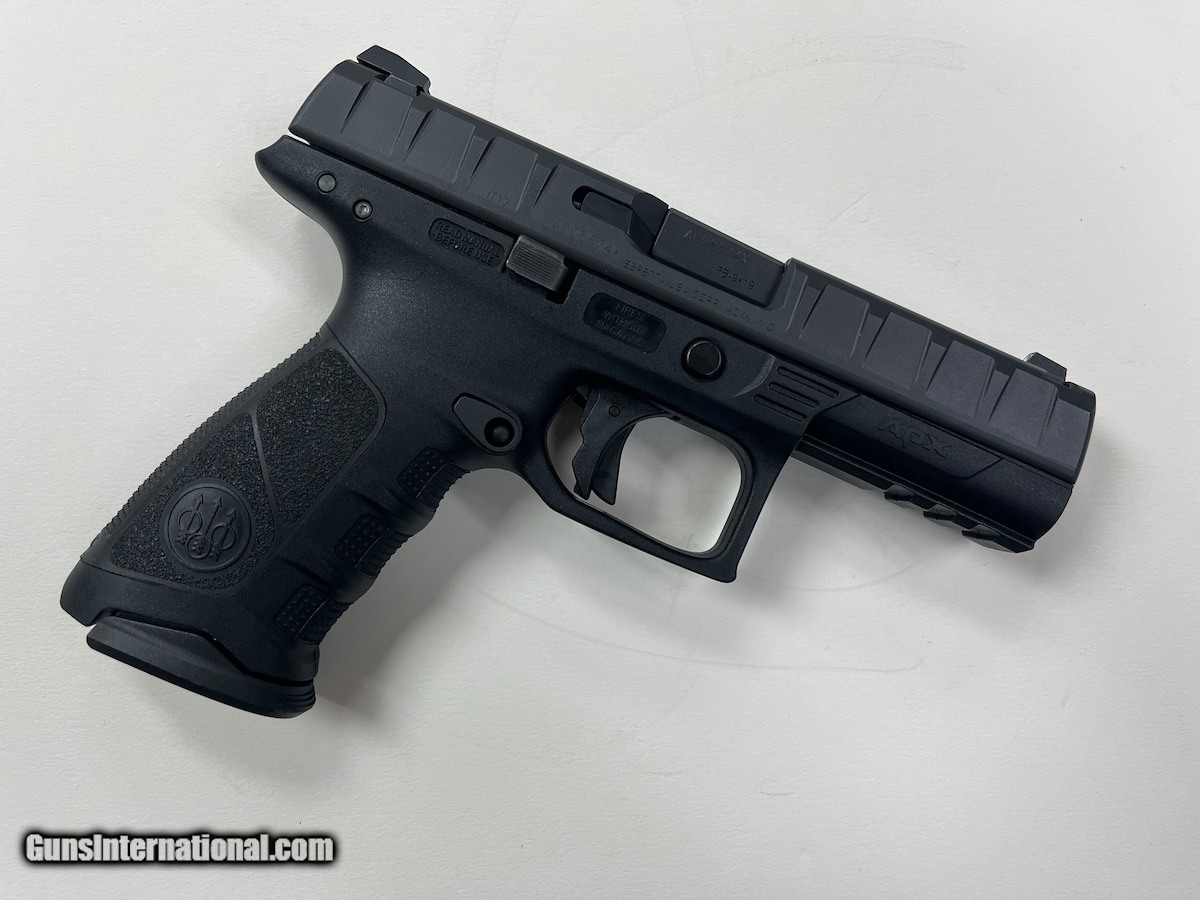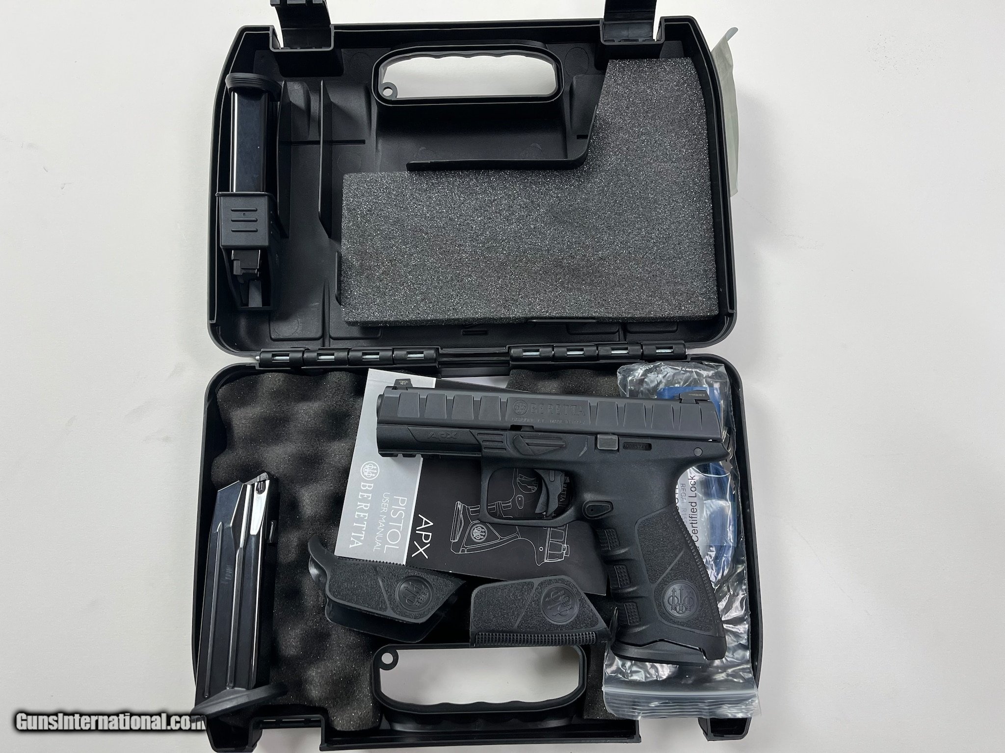Description: Guns Listing ID: 435151 NEW IN BOX!! The addition of the new APX semiautomatic pistol completes the full size pistol portfolio and makes Beretta one of the few manufacturers to offer full size polymer and metallic framed handguns in both hammer and striker fired operating systems. Designed specifically for military and law enforcement operators, the APX has been put through extensive testing and evaluation at the professional end user level. The result is a pistol that delivers superior performance in durability and reliability, ergonomics, trigger, and modularity. Utilizing a removable, serialized chassis frame, the APX can be easily modified with replaceable grip frame housings and is simple to disassemble and maintain. Each APX comes with 3 interchangeable back straps so users can best fit their hands and preferences. The APX’s aggressive full length slide serrations make slide manipulations easy under any conditions. To accommodate right or left-handed use, the APX’s magazine release button can be easily reversed, and the slide stop is ambidextrous. The APX’s trigger breaks at 6lbs and has a clear tactile and audible very short reset. The APX truly is the ultimate striker fired pistol from Beretta. SOLD Manufacturer: BERETTA USA Model: APX LE Caliber Info: 9MM Condition: Used - Non-Certified Barrels: 4.25 BARREL Finish: BLACK |