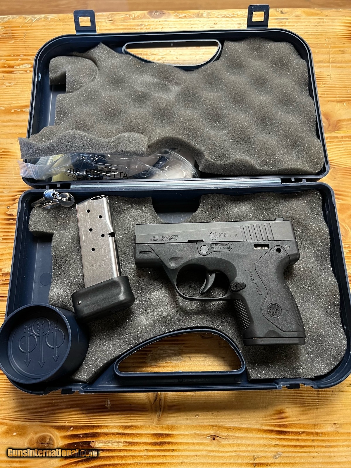 Description: Guns Listing ID: 640499 This firearm is in good condition but does show some signs of use from standard firing and carrying. Includes the factory hard case, two magazines, and all factory paperwork. Does not include any additional accessories. SOLD Manufacturer: BERETTA USA Model: BU9 NANO Caliber Info: 9 MM Condition: Used - Non-Certified Barrels: 2 BARREL Finish: BLACK |