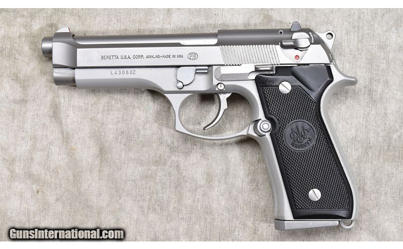 Description: Alloy frame, stainless steel slide and barrel with satin finish, three-dot sights and single/double action are all features of this civilian version of the military M2. It has ambidextrous safety and oversize trigger guard. 9mm Parabellum SOLD Chambers: 15 Metal Condition: Excellent. Wood Condition: Excellent. Bore Condition: Shiny and bright with good rifling. Barrels: 5-inch stainless Triggers: Factory single and double action trigger. Butt Pad: Checkered black plastic. Weight: 34 oz. Sights: Three-dot post and notch. Item Location: Rogers |