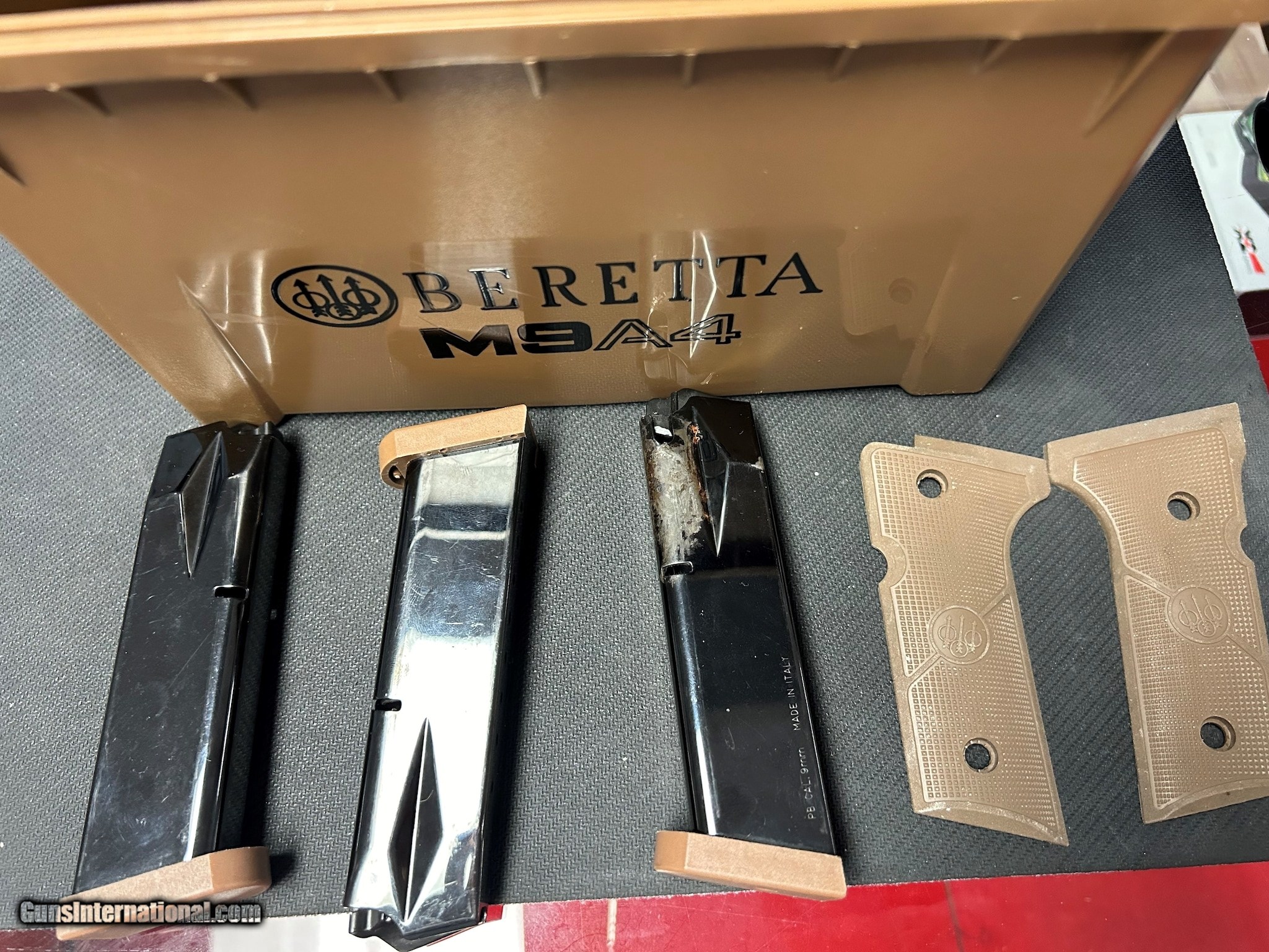 Description: Guns Listing ID: 1041245 COMES WITH FACTORY AMMO BOX 3 18RD MAGAZINES SOLD Manufacturer: BERETTA Model: USA M9A4 Caliber Info: 9MM LUGER (9X19 PARA) Condition: Used - Non-Certified Barrels: 5.1 BARREL Finish: FLAT DARK EARTH CERAKOTE |