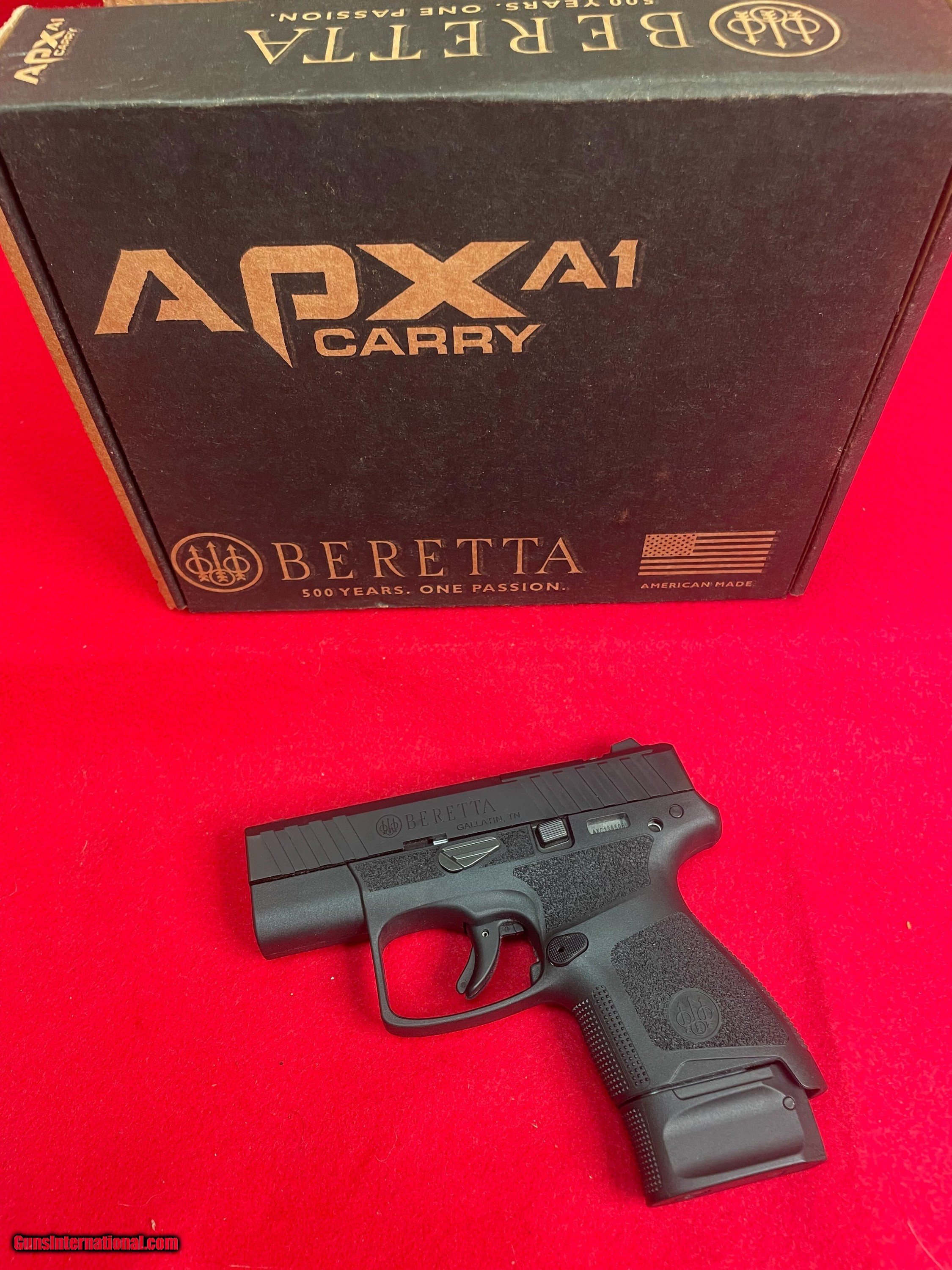 Description: USED in great shapeThe Beretta® APX A1 Carry Semi-Auto Pistol delivers reliable performance that's perfect for EDC purposes. A short, light trigger pull is easy to use for most users, and this Beretta pistol boasts a red-dot-ready slide and removable front sight. Aggressive slide serrations make it easy to rack, plus the slide catch is easy to manipulate. The ergonomic polymer frame delivers durability you'll appreciate, and the single-stack sub-compact profile means it carries well. A reversible magazine release is ideal for right- and left-hand shooters. Additional features include a low-bore axis, replaceable grip-frame housings, and both standard and extended magazine capabilities.