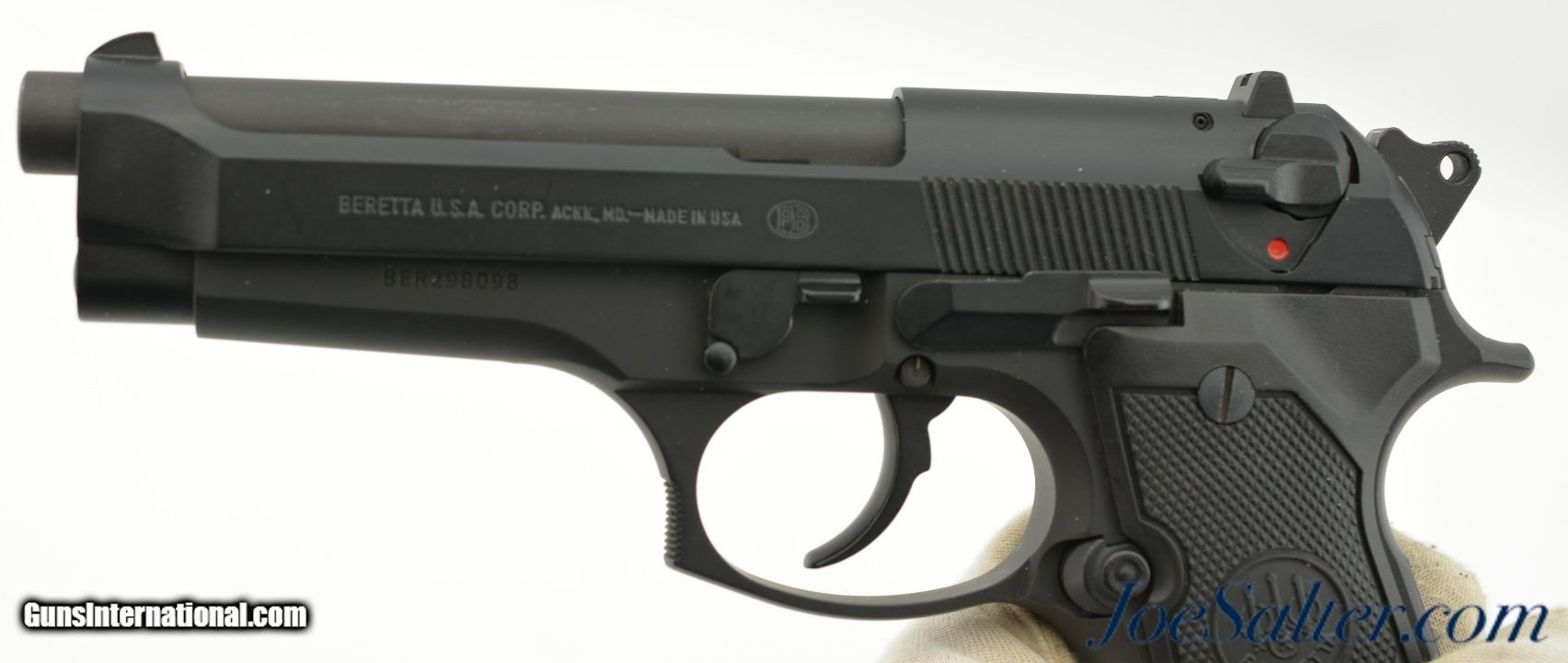 Description: Serial #BER298098, 9mm Parabellum, 4.9 inch barrel with a bright, excellent bore. This is the model 92FS Beretta with 3 dot sights, plastic grips, ambidextrous safety and a slide retaining pin. The pistol comes with two-15 round magazines. The pistol is in excellent plus condition and does not appear to have been used beyond the factory testing and only shows extremely minor handling marks. Comes with the original plastic case and paperwork. FFL SOLD |