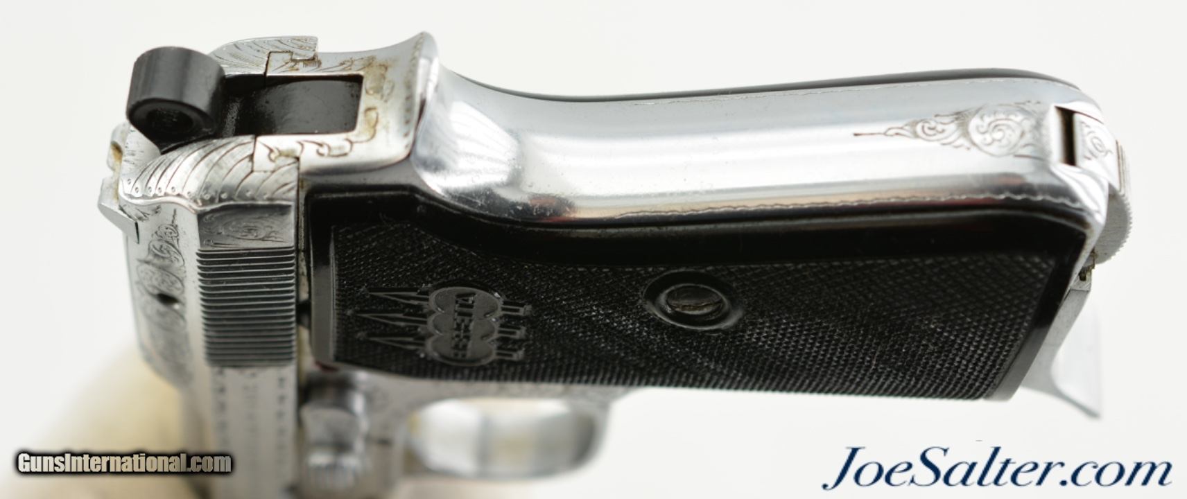 Exquisite Beretta Model 1935 Pistol with Factory Engraved Chrome Finish
