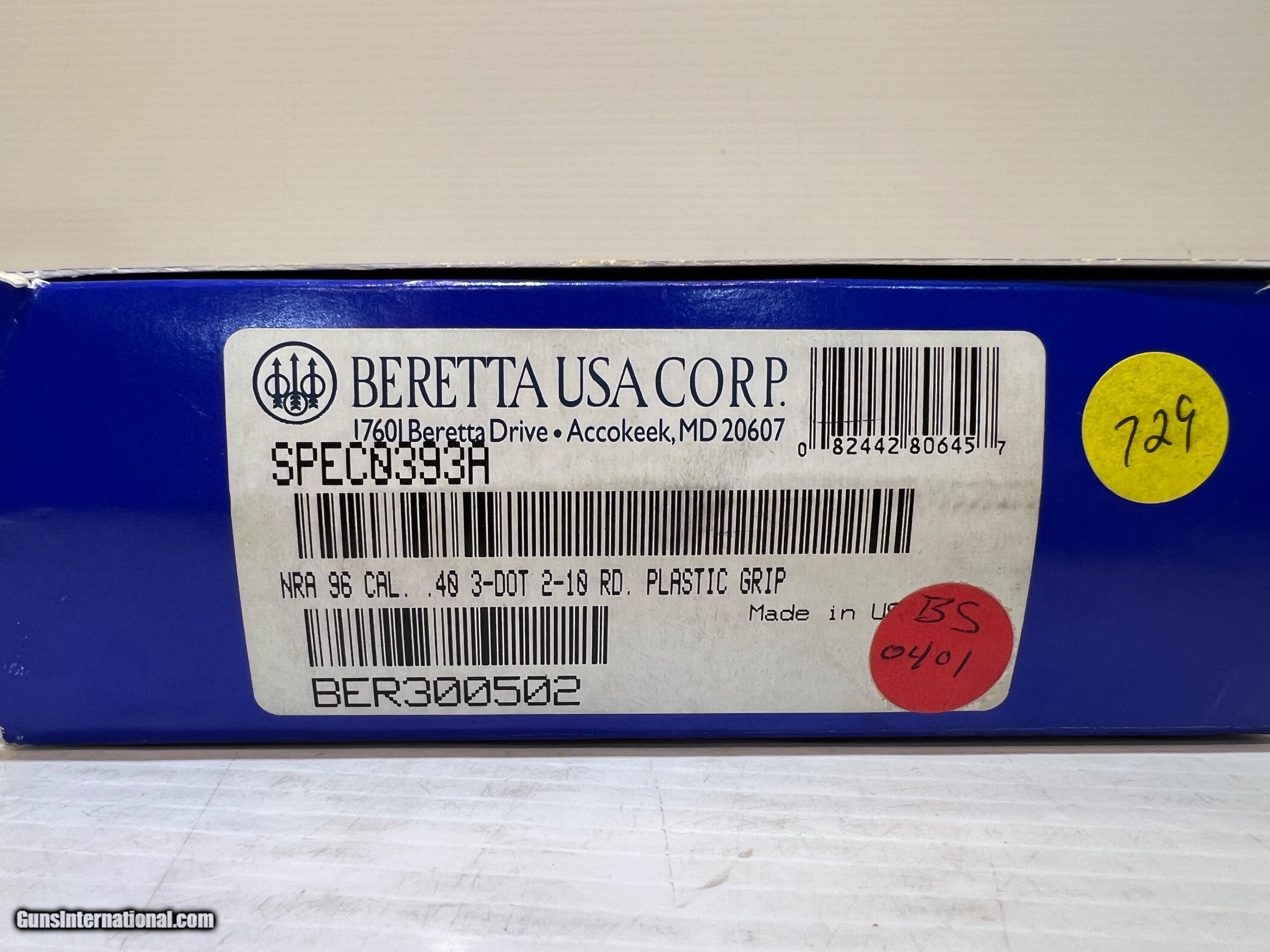 Like New Beretta 96 NRA .40sw, 5" Barrel
