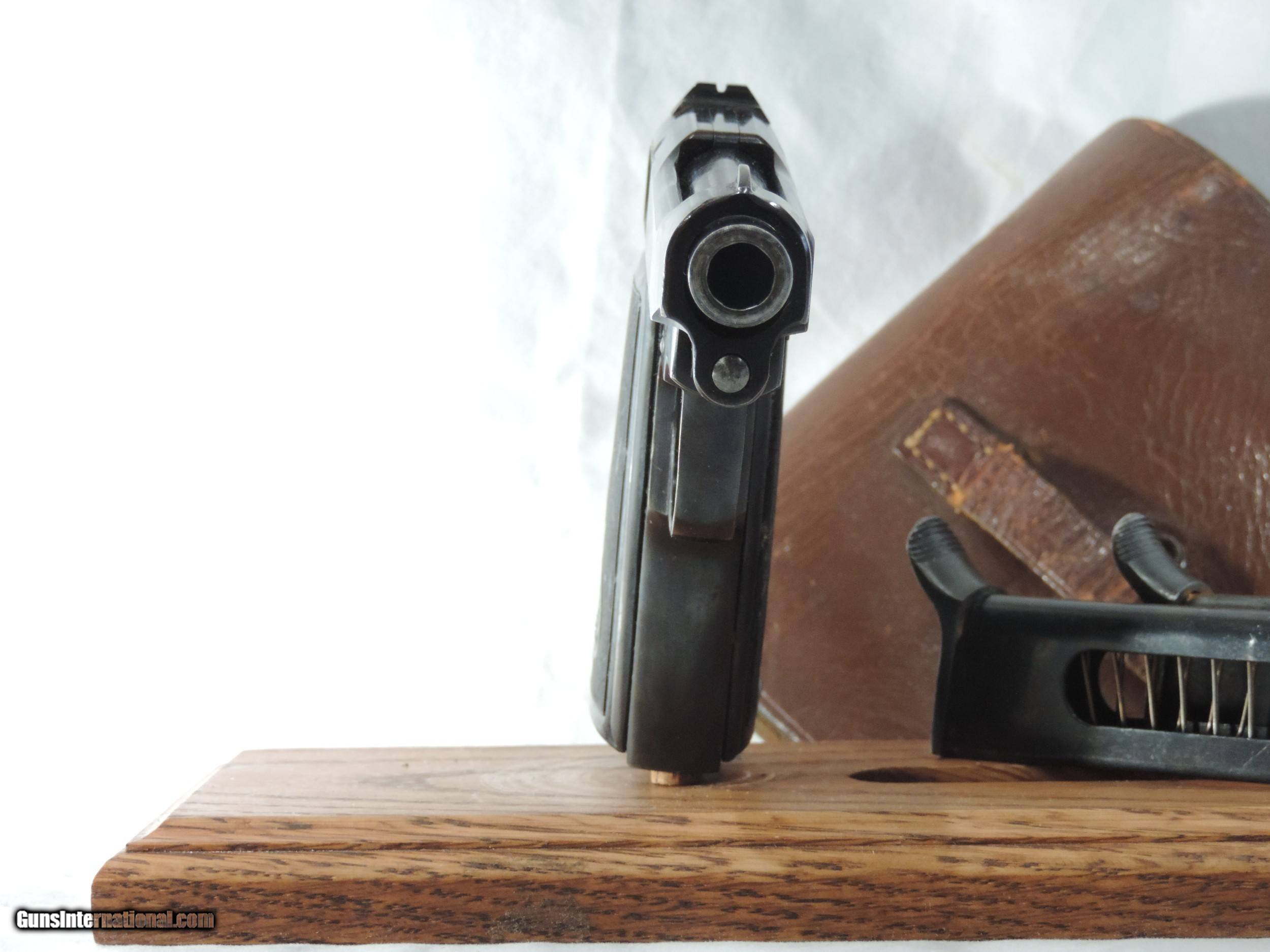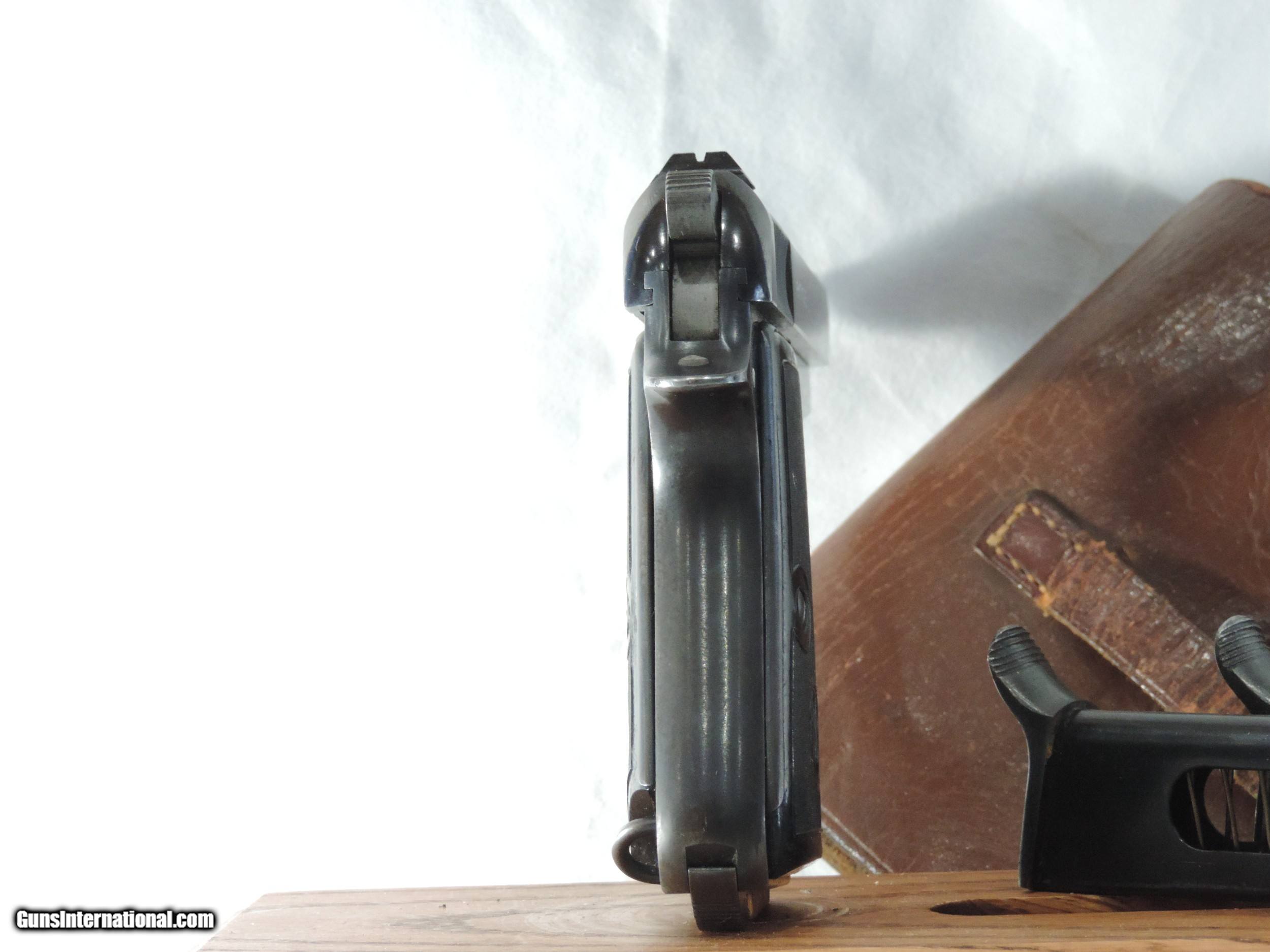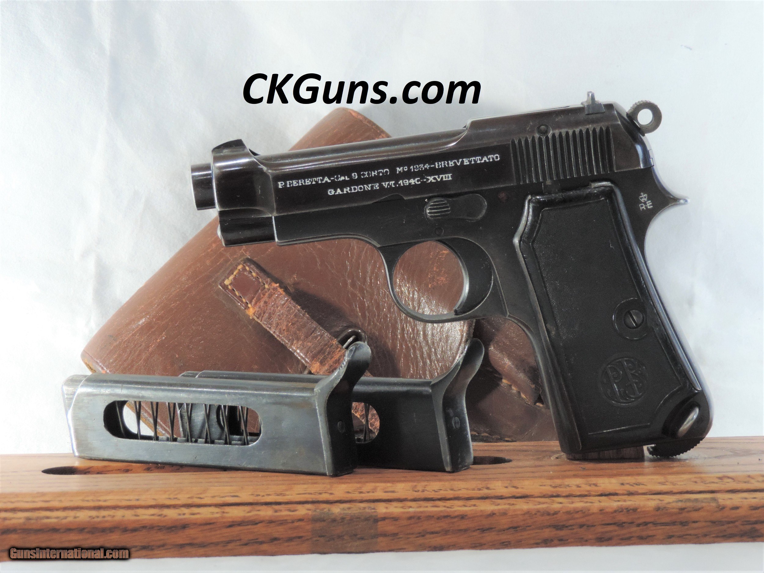 Description: INV. 9280 MINTY, BERETTA MDL. 1934 RIG, CAL. 9MM CORTO, (.380ACP), SER. 817705. MFG. 1943. THIS BEAUTY HAS RETAINED ABOUT 97-98% OF THE ORIGINAL FACTORY FINISH. THE LITTLE LOSS THERE IS, IS DUE TO SOME SHARP EDGE SILVERING AND A FEW VERY SMALL PIN PRICKS. THERE ARE NO RUST SPOTS, RUB MARKS OR SCRATCHES. THE GRIP STRAPS SHOW NO GRAYING. IT IS A TYPICAL WWII "HOLSTER QUEEN" ALL PARTS MATCH. THE RIGHT SIDE HAS THE "OVAL I U E" ITALIAN PROOF. THE LEFT, HAS THE "CROWN/RE" OF THE ITALIAN ARMY. THE GRIP PLASTIC PANELS ARE PERFECT. THE SLIDE RAILS, BOLT, AND FEED RAMP SHOW LITTLE IF ANY USE. THE BORE IS PRISTINE LIKE THE REST OF THE GUN, LASER BRIGHT AND SCALPEL SHARP RIFLING. THE RIG COMES WITH ONE VERY SCARCE RARE BROWN ITALIAN ARMY HOLSTER IN GREAT SHAPE AND TWO CORRECT FINGER GRIP MAGAZINES. THIS RIG WOULD SATISFY EVEN THE MOST CRITICAL COLLECTOR AND WOULD BE REAL FUN AT THE RANGE. MODESTLY PRICED AT......$1595.*** ***100% SATISFACTION GUARANTEED. THE WHITE CRAYON IS TO SHOW THAT THE GUN IS CORRECTLY MARKED. IT IS EASILY REMOVED WITHOUT DAMAGE WITH A BRUSH AND LIGHTER FLUID. WE WILL DO IT ON REQUEST. To purchase this firearm or if you want to request more information contact us at: Email ckguns[at]ymail[dot]com Phone 201-512-0002 Cell 201-575-6838 FAX 201-215-4759 We accept most major credit cards. Prices shown are Discounted 3% for Cash or Check. The buyer must be familiar with all the laws governing the purchase and the ownership of firearms in their own city and state. The Yankee Armorer, Inc is not responsible for any failure to comply with or observe these laws. The Yankee Armorer, Inc will only ship after full payment and receipt of all required documents. Shipping: Add $35.00 for handguns, $45.00 for long guns. New Jersey buyers are subject to a 7% sales tax. The Yankee Armorer, Inc offers a 3 day inspection period with full refund upon return of intact firearm and in the original condition. The Yankee Armorer, Inc offers a no interest lay away program - 25% down; 25% in 30 days; 25% in 60 days; and full payment in 90 days. Any violation of this policy is subject to restocking and forfeiture of all payments. Any variation from this policy must be agreed to in advance. Unshipped Cancelled sales are subject to a 20% restocking fee. Be advised that all firearms sold by The Yankee Armorer, Inc. or the Gun Exchange, LLC (SELLER) are sold as collector’s items. They have not been fired or tested for safety and must be examined by a license gunsmith prior to use. By purchasing any item from the (SELLER), you are agreeing to hold the (SELLER) free from any damages or lawsuits of any nature. Any item left for transfer or storage will be charged to $25.00 per month, per item from the day of its receipt. Any variation from this policy must be agreed to in advance. Store hours 10:00 am to 5:00 pm Tuesday -Saturday. It's always best to call for appointment. Store 201-512-0002, cell 201-575-6838. SOLD |