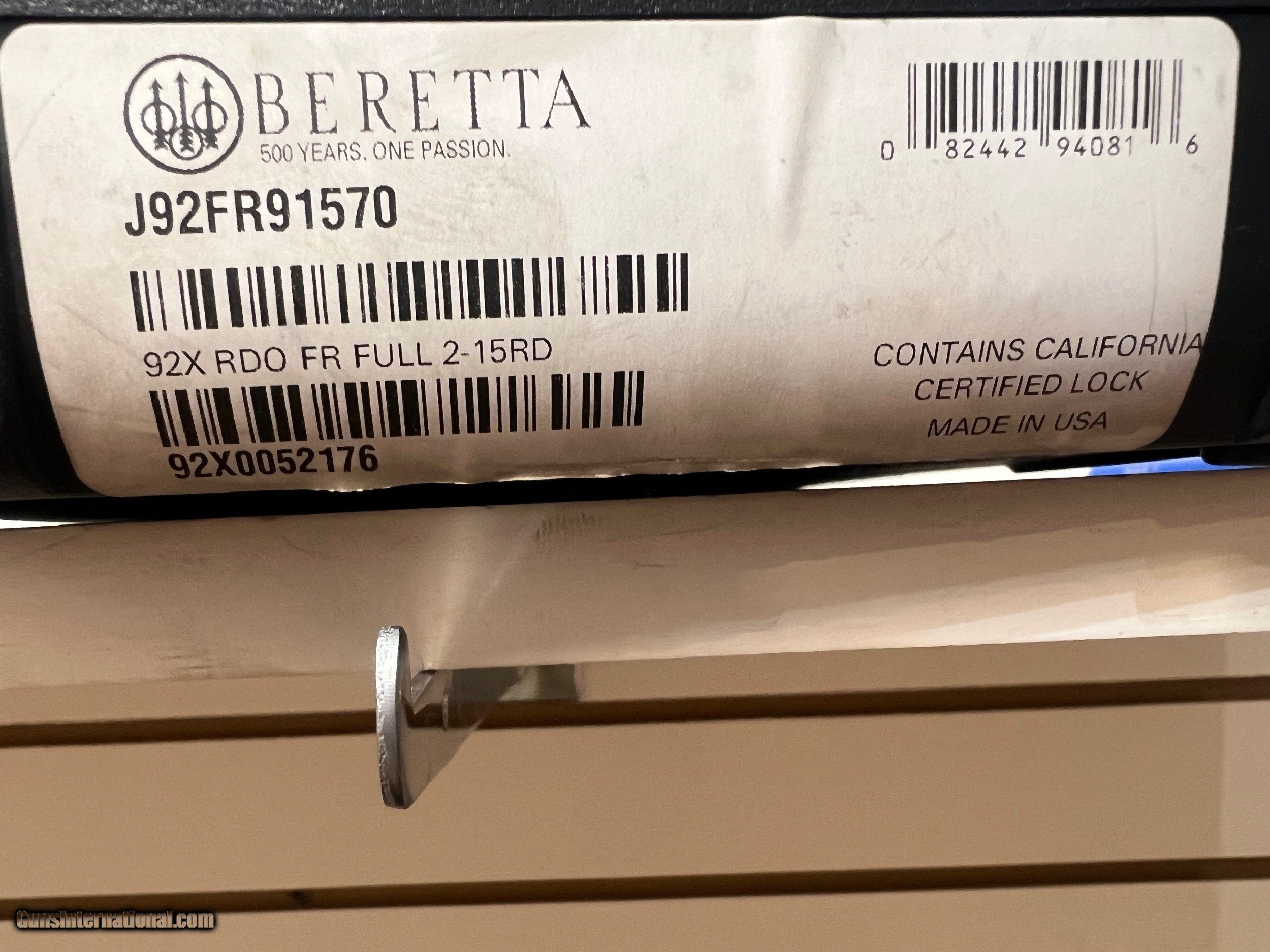 Description: new BER J92FR91570 92X RDO 9MM FR FULLSIZE 15RD in hard plastic case new (CATID:26); (ACTION:SA/DA); (CALIBER:9MM LUGER); (BARREL LENGTH:4.70); (CAPACITY:15+1); (SAFETY:DECOCKER); (GRIPS:VERTEC-STYLE THIN GRIPS); (SIGHT CONFIGURATION:3-DOT DOVETAIL); (FRAME FINISH:BLACK); (SLIDE DESCRIPTION:BLACK BRUNITON STEEL); (DEPARTMENT:FIREARMS); (CATEGORY DESCRIPTION:PISTOLS) Buyer pays shipping Millers Gun Center Located in New Castle, Delaware "Home of TAX-Free shopping" No Credit Card Fees Send Gun international inquiry and then call 302-328-9747 to complete your purchase SOLD Serial Number: 92X0052176 |