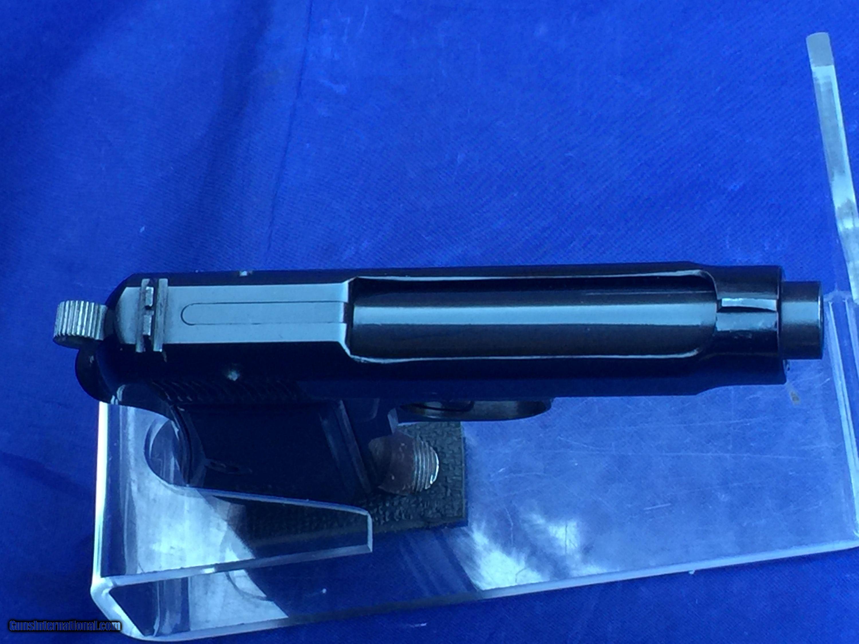 Description: Original WW2 Italian Beretta M1934 made in 1941 cal .380 in excellent plus condition. Unusual IVU marking on the right side of the frame. Original finish, all matching, not import marked, no rust or pitting on metal, no cracks on grips, great bore, functions fine. I'm not a dealer. I'm a private collector and I'm currently thinning out my collection. I accept personal checks, but due to the POLICY OF MY BANK it takes 7 business days from the day of the deposit for them to clear. SOLD Curio/Relic: Yes |