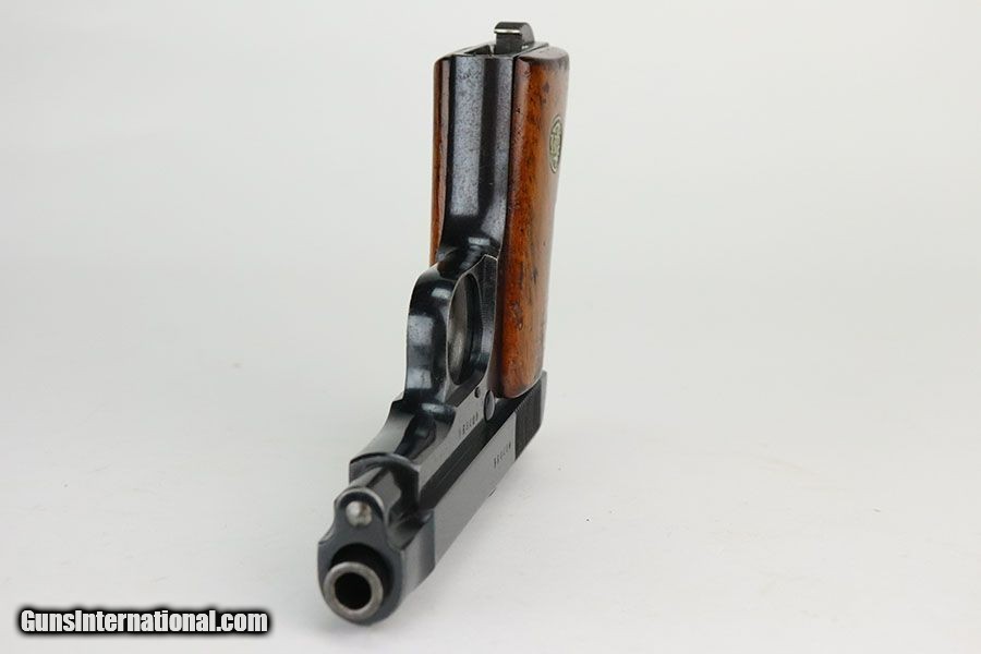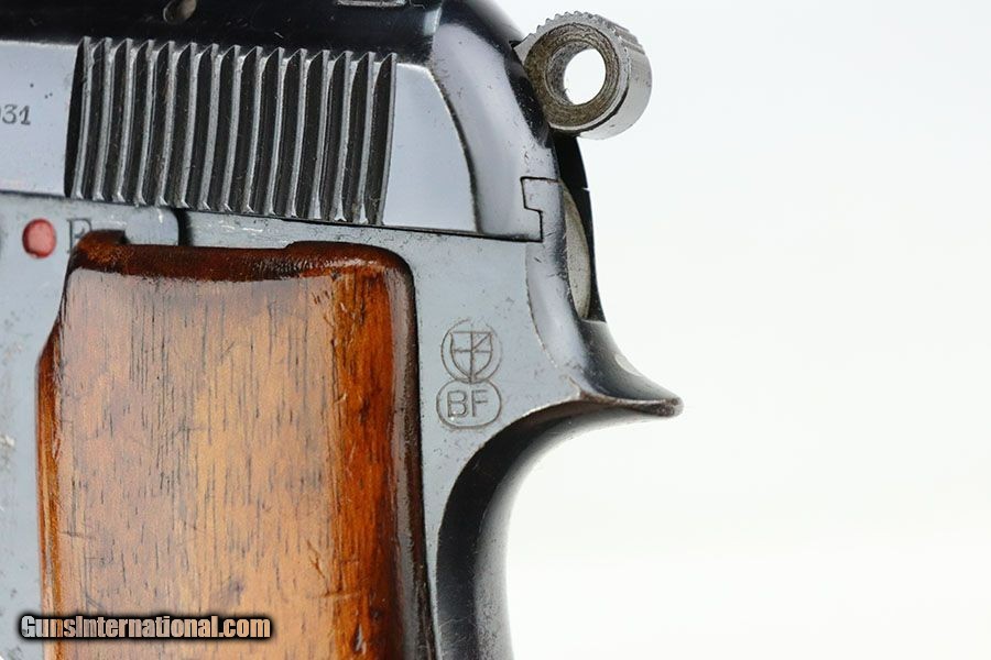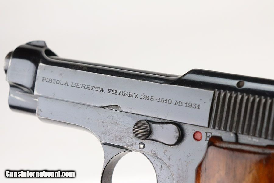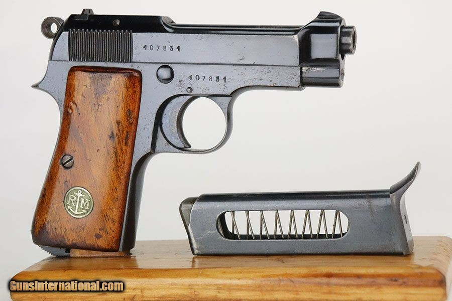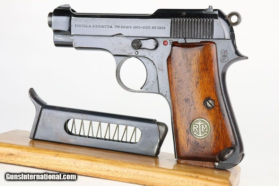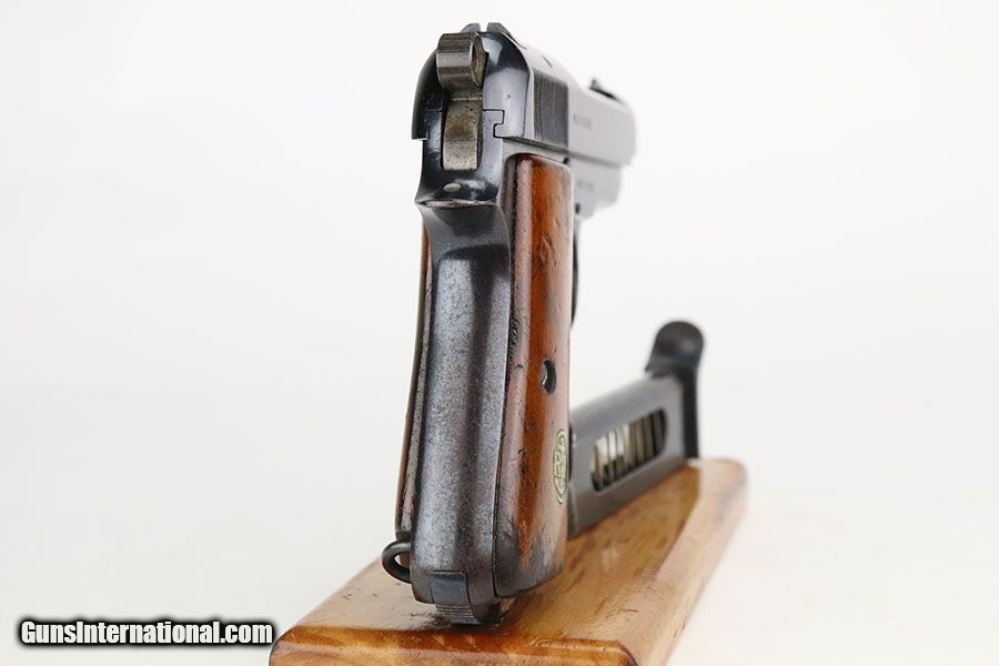 Description: This is a very rare and desirable Beretta Model 1931, one of only 8,000 produced. The model 1931 was only manufactured from 1931-34 and was made for the Italian Navy. It was a transitional design between the 1922-23 models and the final designs of the 1934 and 1935 Beretta. The pistol is marked with the RM and Navy anchor on the grips, and shield over BF marking on left side of frame. The pistol itself is somewhat hard to rate as there isn't much actual bluing loss, but there is oxidation throughout, especially on the grip straps. Grips have minor dings but no major defects. Bore has some frost and freckling in the grooves. SOLD Curio/Relic: Yes Handgun Caliber: .32 ACP (7.65x17mm Browning SR) Manufacturer: Beretta Model: 1931 Serial Number: 407831 Condition: ~95% Bore Condition: 7/10 Manufacture Date: 1931-34 |
