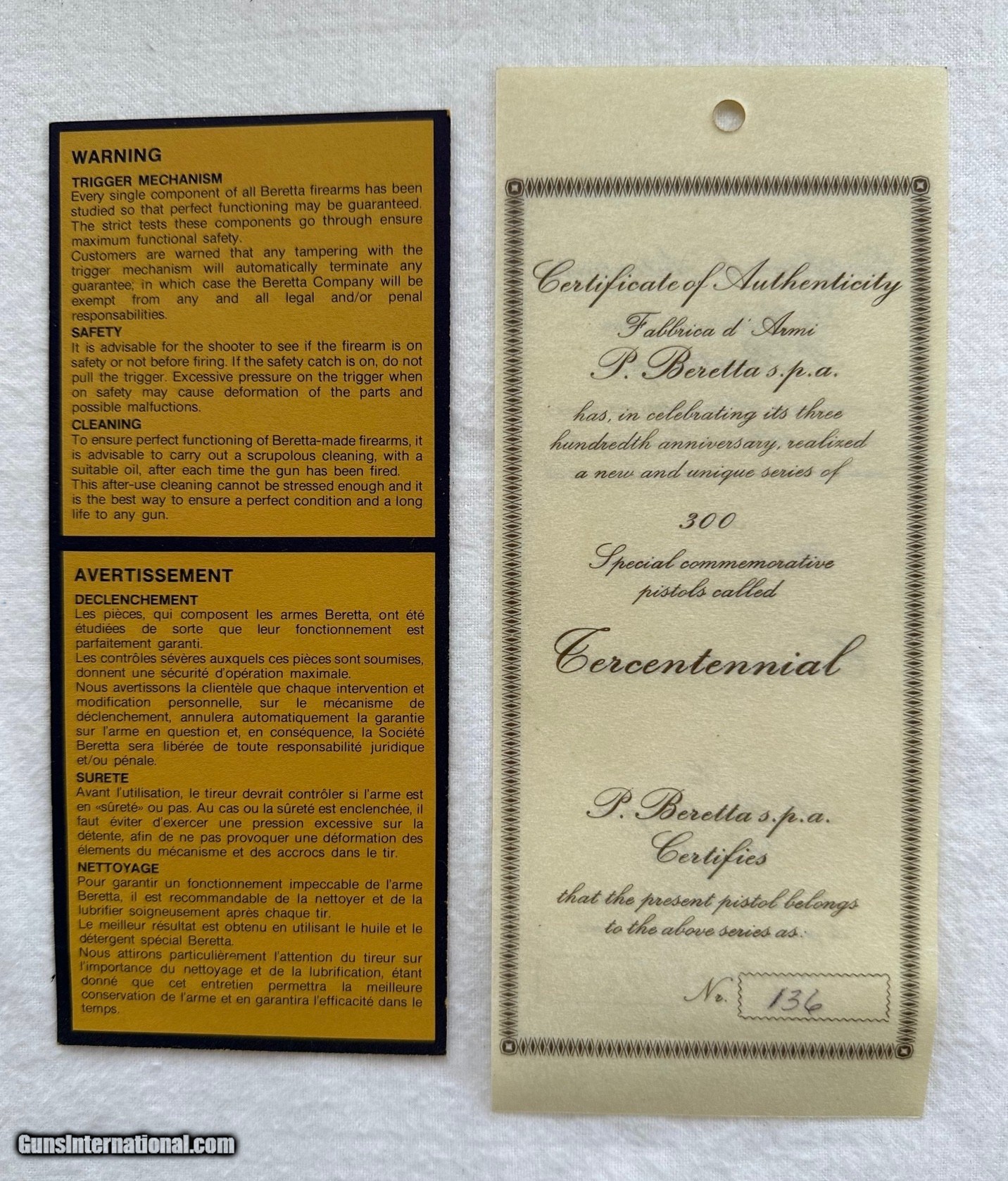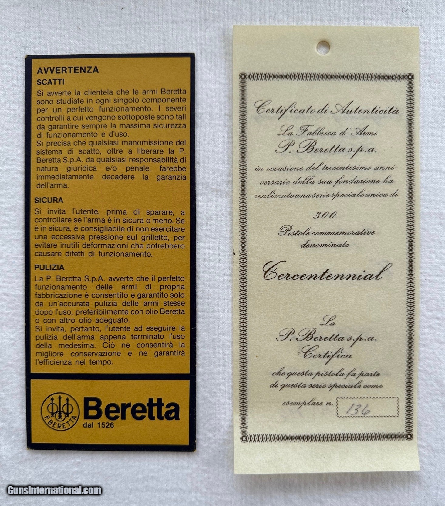Rare - Beretta Model 84 .380 Tercentennial (#136 of 300) Semi-Automatic Pistol
