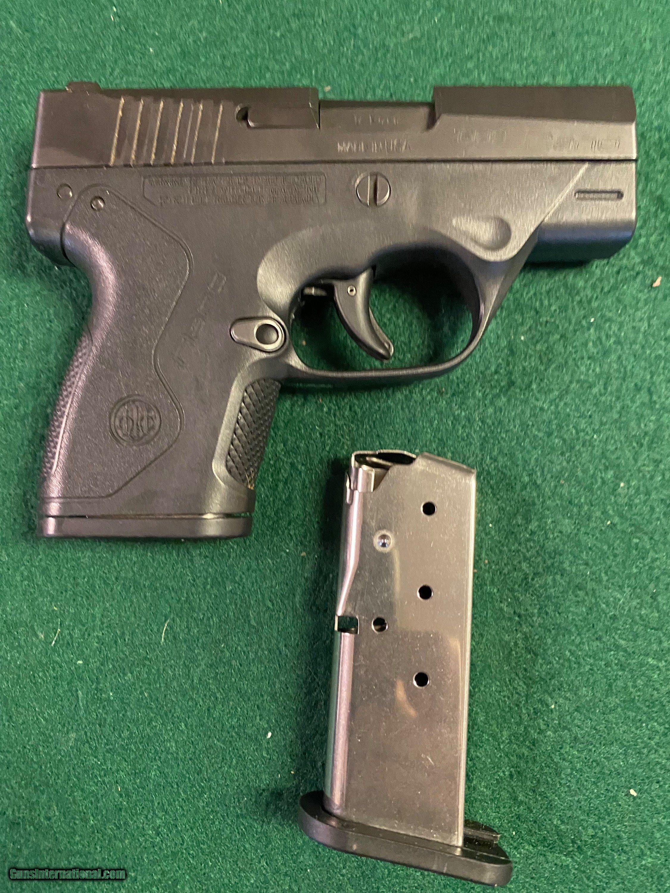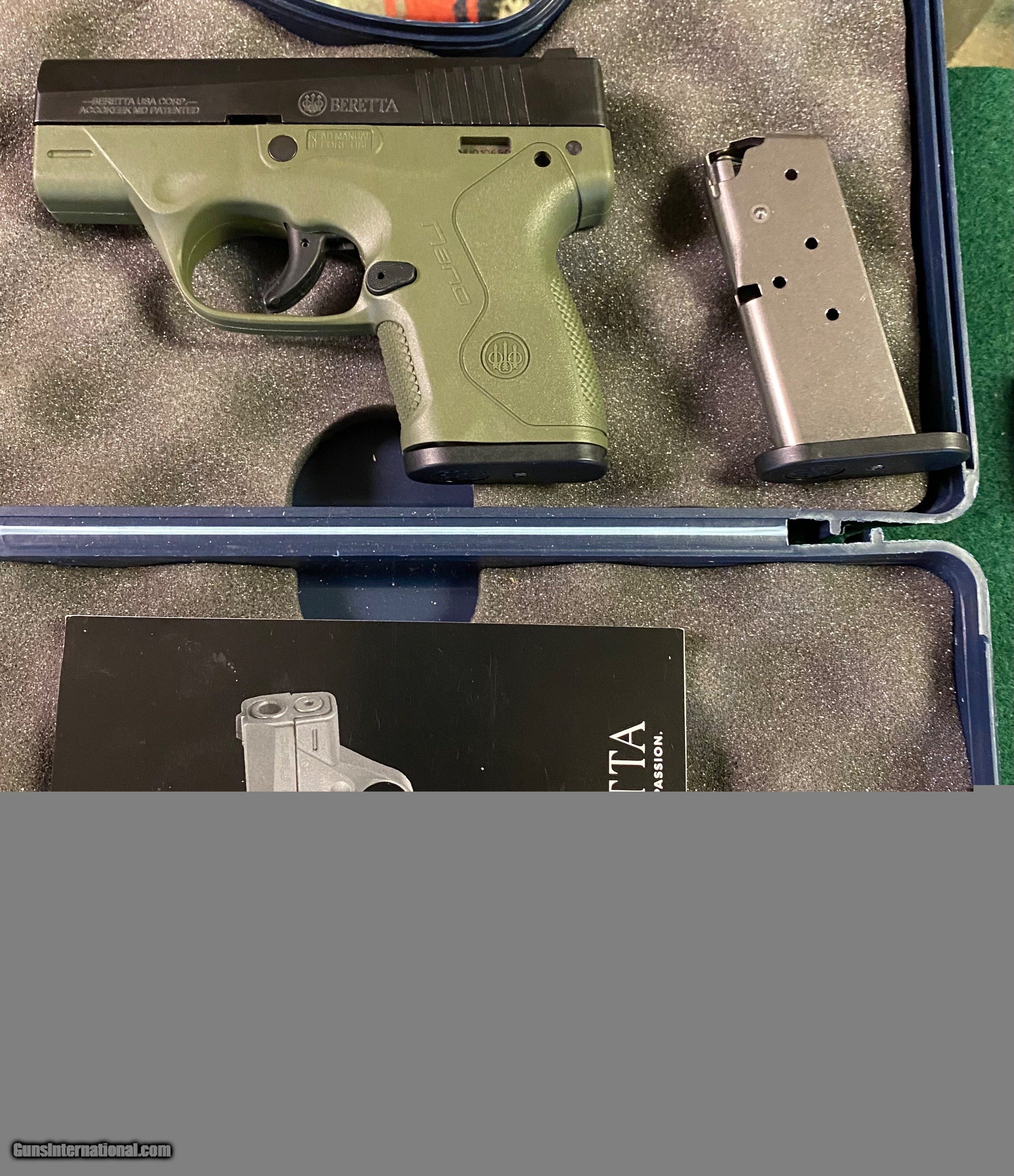 Description: This consignment item is a pair of Beretta Nano 9 mm pistols. This combo comes with an extra slide, barrel, pink frame plus small parts. Each gun comes with 2 magazines, and 1 mag comes with the slide and frame for a total of 5 mags. The Nano w/ODG frame comes w/a box and Trijcon front sight. We reserve the right to sell this item at our retail location until an offer is placed on Guns International. This is a package deal for $795 plus $30 for shipping. Please see pictures for more details. We accept major credit cards with a 4% surcharge. USPS money order also accepted. Please allow us up to three business days to return emails. We are open Tuesday through Saturday, 9 AM to 5 PM. Closed on Sunday and Monday. We have in stock all kinds of classic rifles, shotguns as well as handguns. Come and visit us at George Herold's Gun Shoppe in Waynesboro, Pa. SOLD Handgun Caliber: 9x19mm Parabellum (9mm Luger, 9x19mm NATO) Manufacturer: Beretta Model: Nano Serial Number: NU0106xx + NU005351 Barrel Length: 3” Condition: VG/EXC |