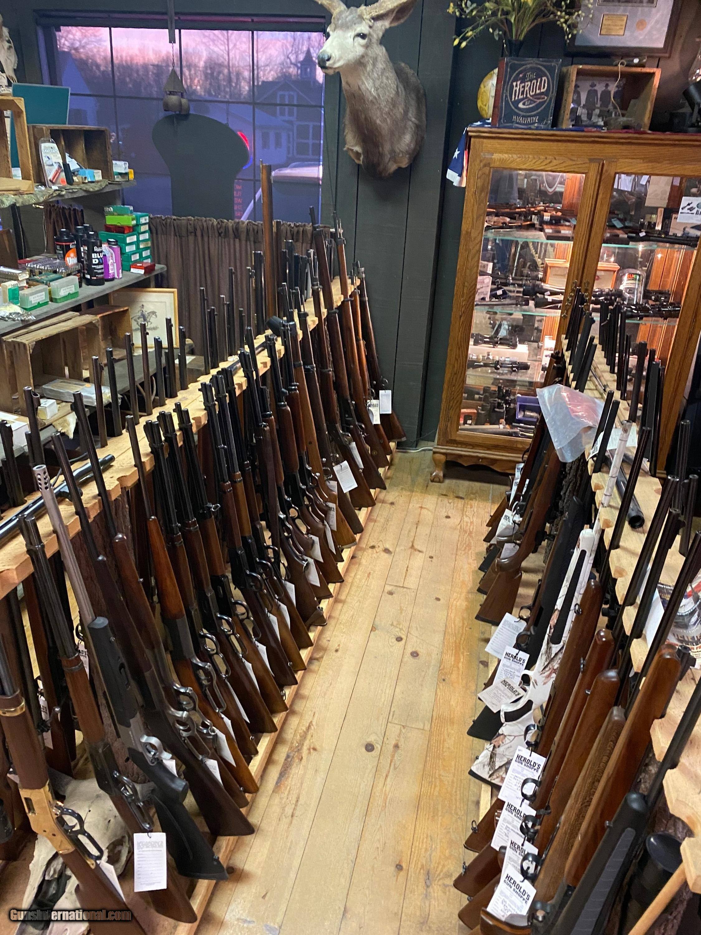 About Us: We are an “Old School” gun store with a vintage Western style. We do carry various modern pistols, revolvers and long guns. However, our specialty is vintage firearms including bolt action, lever action and semi automatic rifles. For example, we usually have at least two or three M-1 Garand rifles at any given moment. Other times we may have one or two Springfield 1903 rifles. Also in stock are a few dozen lever action rifles available in different calibers & barrel lengths. Lastly, we have a wide variety of Colt Single Action Army revolvers in different calibers and barrel lengths. (NOTE: we try & remove items from Guns International ASAP if they are sold through our retail location, but there may be a slight delay in doing so)