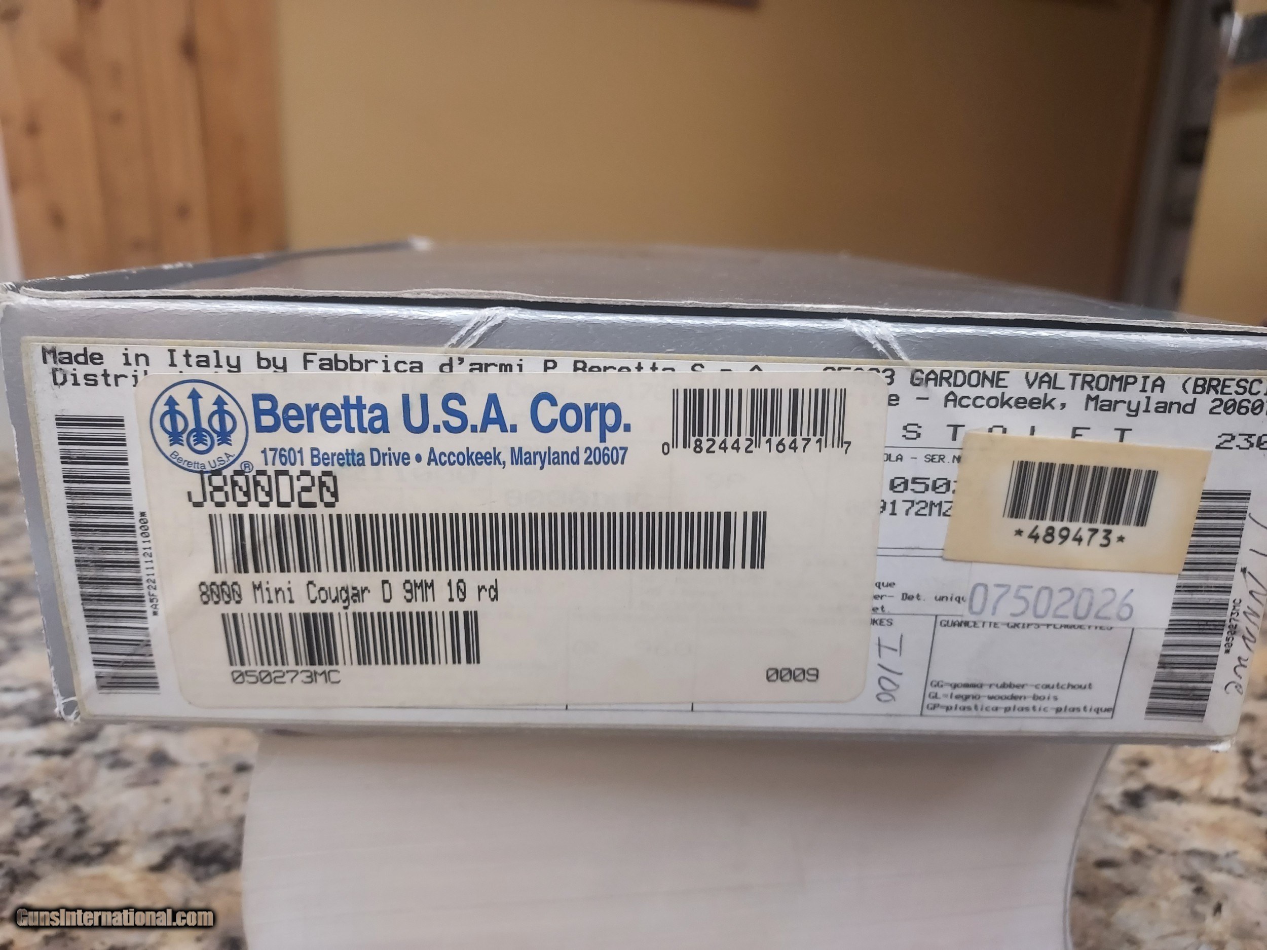 Two NIB Beretta Model 8000 "Mini-Cougar D' 9MM Pistols