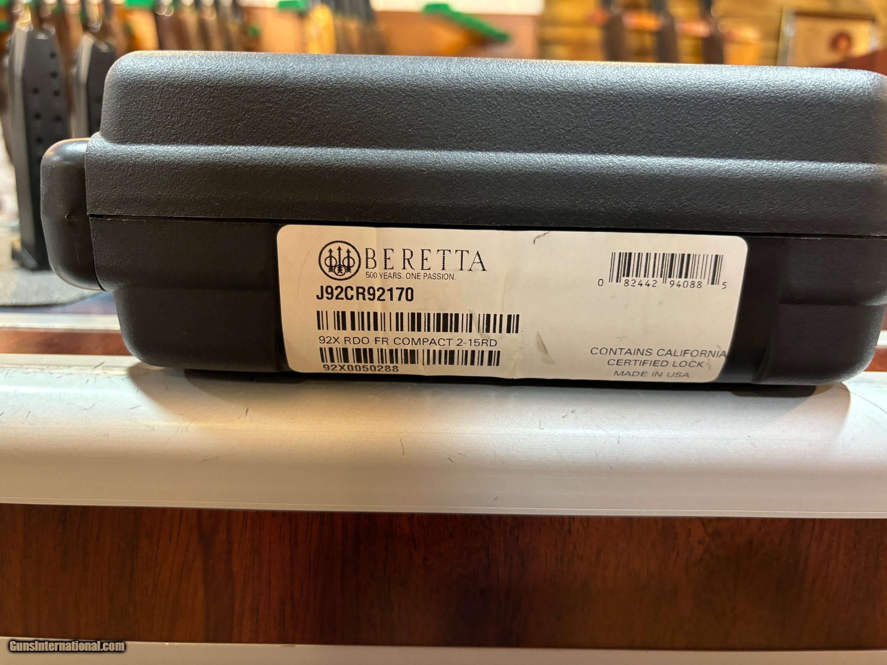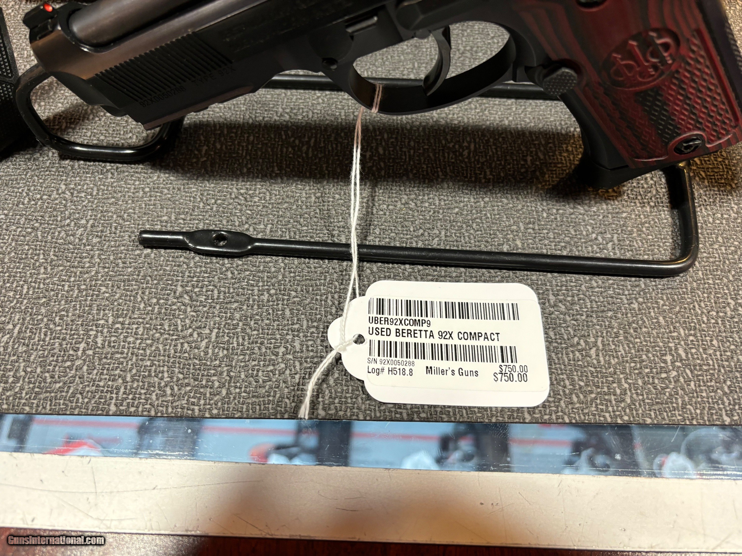 Description: USED Beretta 92X Compact RDO G style(decocker only) 9mm 15 round capacity (3) magazines included LOK grips Short reset trigger Optimized trigger bar Factory grip included SOLD Handgun Caliber: 9x19mm Parabellum (9mm Luger, 9x19mm NATO) Manufacturer: Beretta Model: 92X Compact RDO Serial Number: 92X0050288 Condition: Very Good |