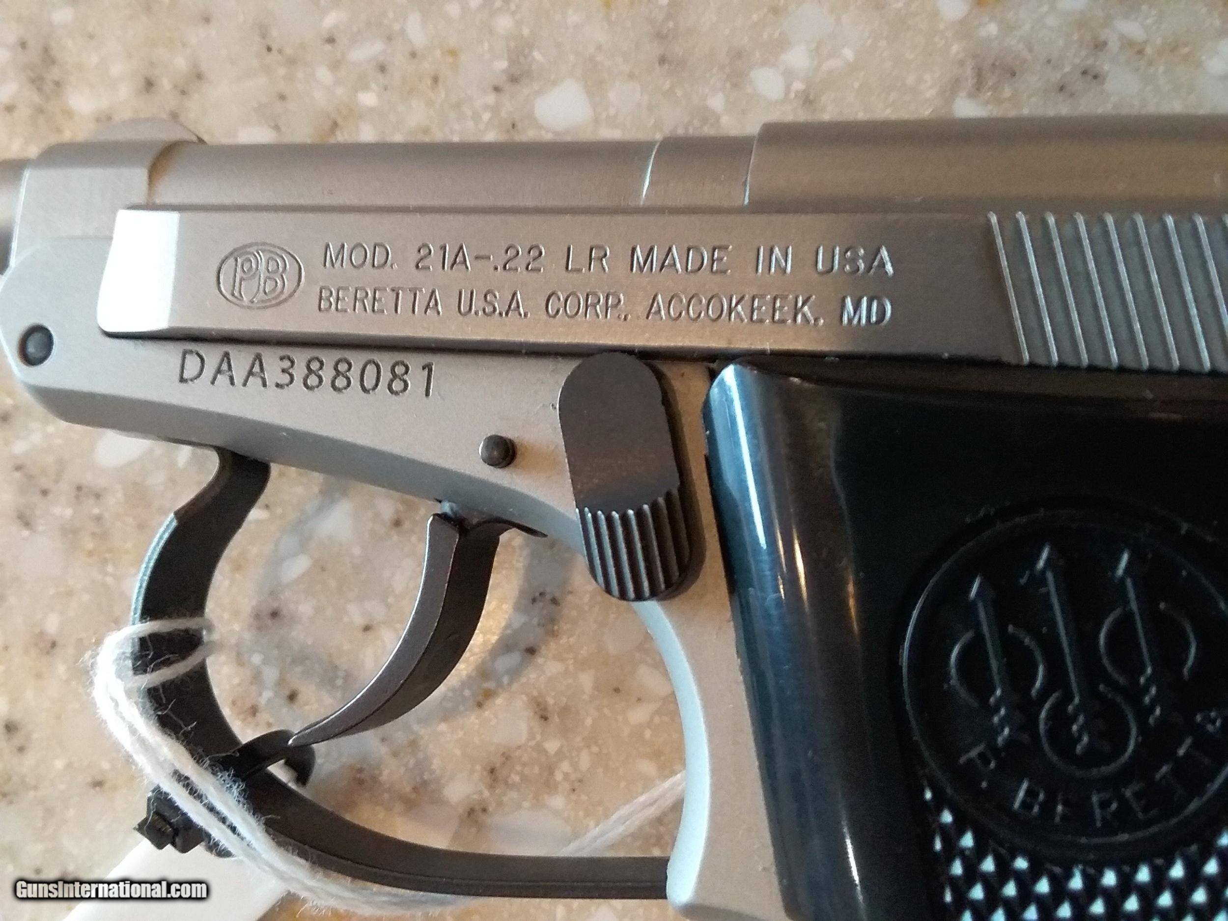 Description: Used Beretta Model 21A 22 Long Rifle Original Box, Lock and Manual Very Good Condition SOLD Serial Number: DAA388081 |