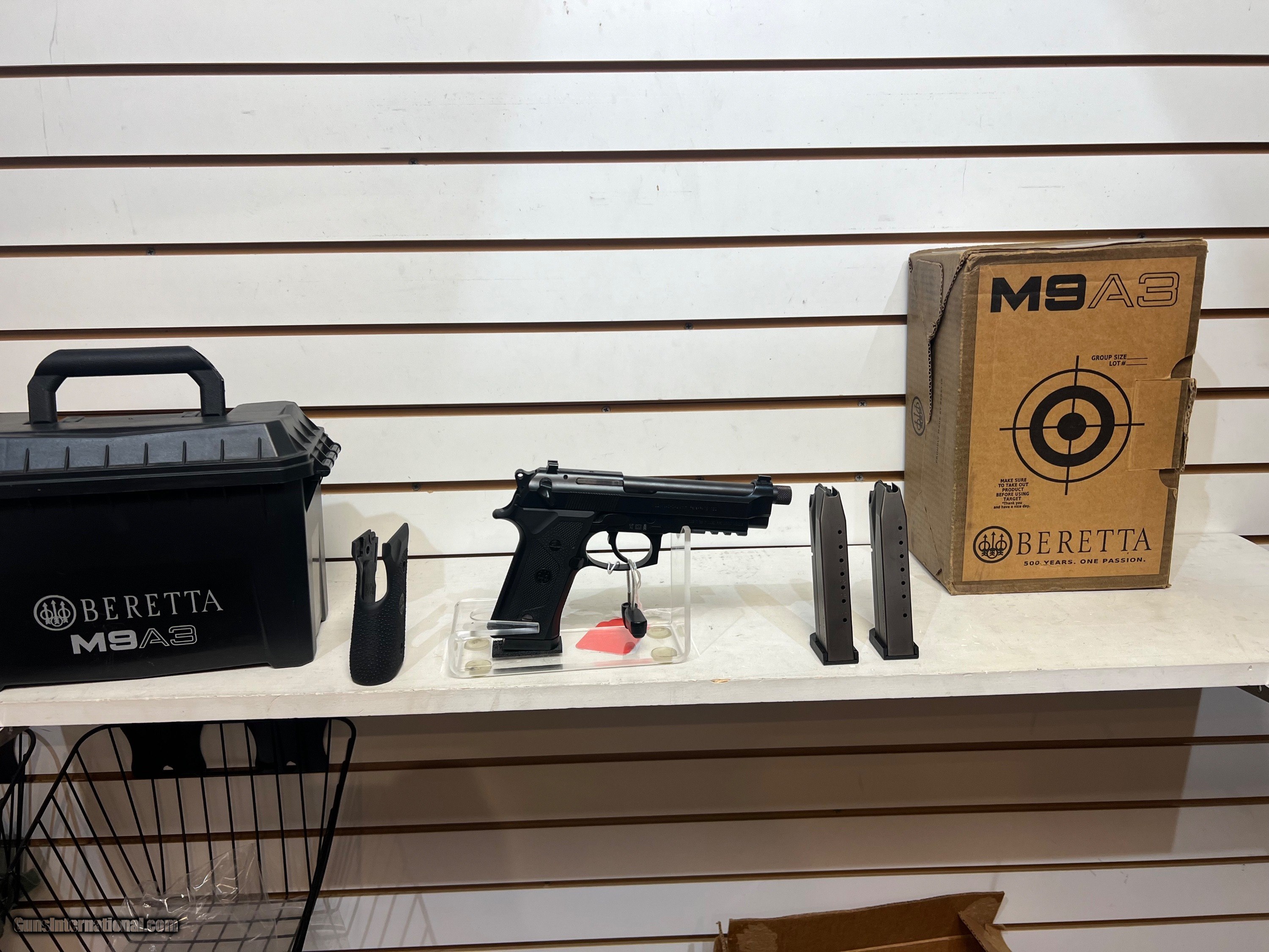 Description: The M9A3 was designed to deliver the performance that military, Law Enforcement and consumers demand. In short, this combat pistol was designed to per form exceptionally in any tactical or home defense situation. ActionSingle/Double Barrel length (mm)127 Barrel length (in)5 Caliber9x19 (PARA) GripWidth1.3" HistoricalN Magazine10 - 17 Overall height (mm)137 Overall height (in)5 Overall length (mm)220 Overall length (in)8.7 Overall width (mm)38 Overall width (in)1.5 SightRadiusIN6.3 SightRadiusMM160 Weight unloaded (g)944 Weight unloaded (OZ)33.4 Buyer pays shipping Millers Gun Center Located in New Castle, Delaware "Home of TAX-Free shopping" No Credit Card Fees Send Gun international inquiry and then call 302-328-9747 to complete your purchase SOLD Handgun Caliber: 9x19mm Parabellum (9mm Luger, 9x19mm NATO) Manufacturer: Beretta Model: M9A3 Serial Number: B029615Z |