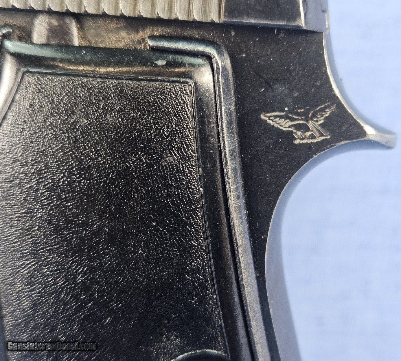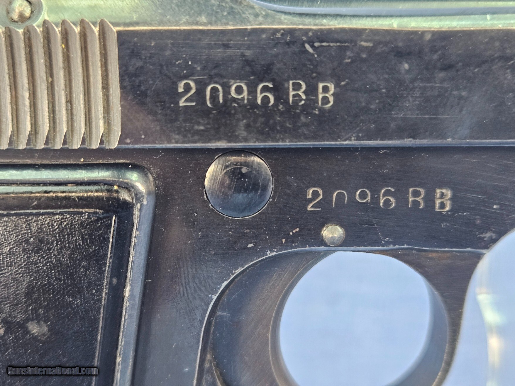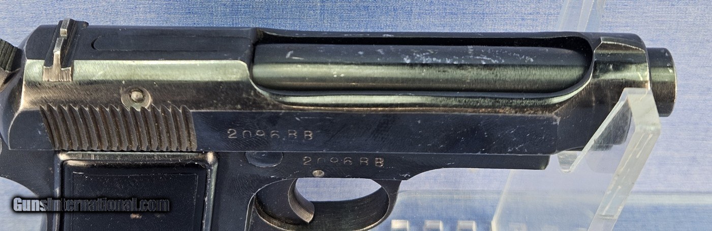 ORIGINAL CONDITION I HAVE A VERY RARE MODELLO 1934 BERETTA PISTOL IN .380 CALIBER THAT WAS MANUFACTURED FOR THE GERMAN ARMY IN 1943-44.THESE GUNS HAVE NO IDENTIFYING MARKS EXCEPT THAT THE SERIAL NUMBERS HAVE AN “AA” OR A “BB” SUFFIX. WHAT MAKES THIS ENEN MORE DISIRIBLE IT HAS AN AIR FOCE ACCEPTANCE PROOF. THIS IS A ATTRACTIVE GUN WITH A MINT BORE. VERY FEW .380’S WERE OBTAINED BY THE GERMAN WHILE THEY TOOK IN TONS OF THE 4UT MARKED 1935 MODEL. IF YOU COLLECT BERETTA PISTOLS THIS IS A RARE AND SELDOM SEEN VARIANT. IF YOU COLLECT NAZI PISTOLS THIS IS ONE OF THE HARDEST TO OBTAIN.