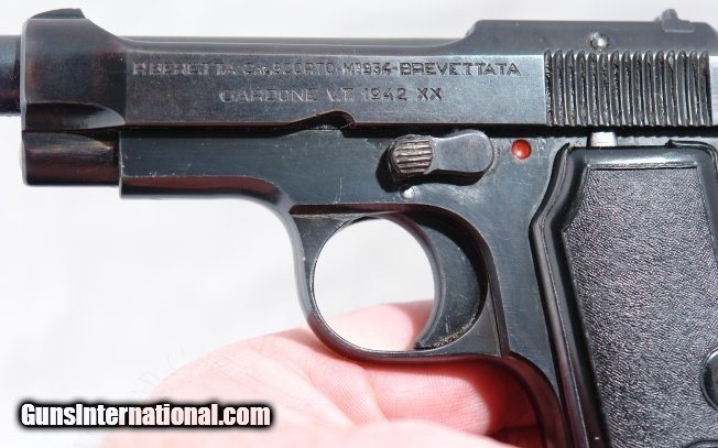 Description: WW2 BERETTA MODEL 1934 SEMI-AUTO .380 CAL PISTOL DATED 1942. Superior condition and all matching ( 960,xxx serial range) and original. Has nearly all the original blue and near mint grips. Perfect working order and mint bore. Nicest we have had. SOLD Handgun Caliber: .380 ACP (9x17mm Browning Short) |