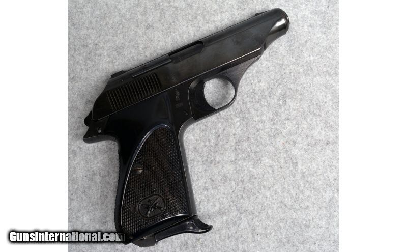 Description: Good condition, italian made, surplus handgun. In 7.65mm (32 ACP). Blued metal with very good condition plastic grips. SOLD Caliber Info: 7.65mm (32 ACP) Chambers: Semi-Auto. Metal Condition: Very good with few handling marks. Bore Condition: Very good, bright and shiny. Barrels: 3 inch blued steel barrel. Triggers: Factory Stock: Very good condition plastic grips. Weight: 25 oz. Sights: Front blade and rear notch. Item Location: Hazelwood, MO |