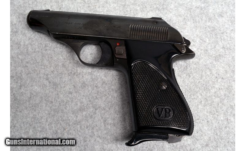 Description: Good condition, italian made, surplus handgun. In 7.65mm (32 ACP). Blued metal with very good condition plastic grips. 7.65mm SOLD Chambers: Semi-Auto. Metal Condition: Very good with few handling marks. Barrels: 3 inch blued steel barrel. Triggers: Factory Sights: Front blade and rear notch. Item Location: Hazelwood, MO |