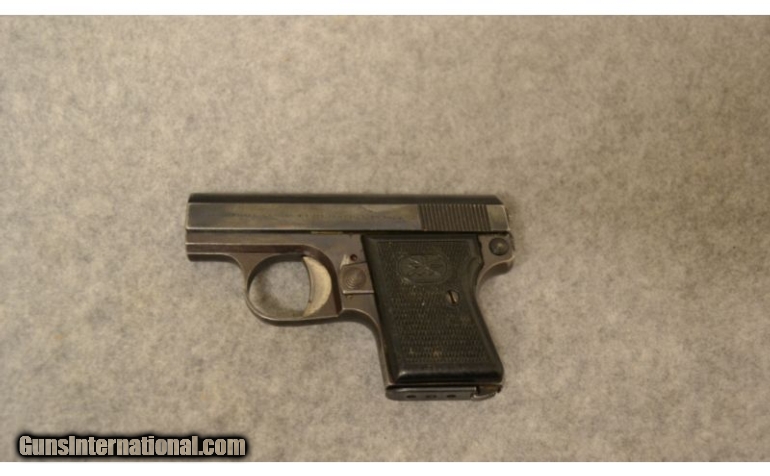 Description: Nice pocket pistol. Good choice for personal carry firearm. SOLD Manufacturer: Approx. 1945-48 ; SN: 27889 Caliber Info: 6.35MM Metal Condition: Shows original finish with light handling marks and holster wear. Wood Condition: Shows original finish with light handling marks and field use. Bore Condition: Clean with sharp lands. Barrels: 2 1/8 Triggers: Single action. Stock: Bakelite grips with shar checkering. Weight: 8 oz. Sights: Iron sights. Item Location: Anchorage, AK |
