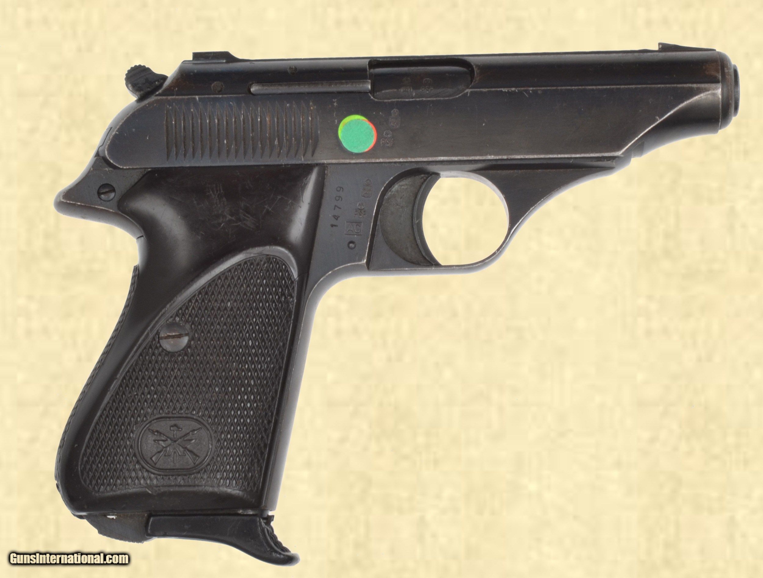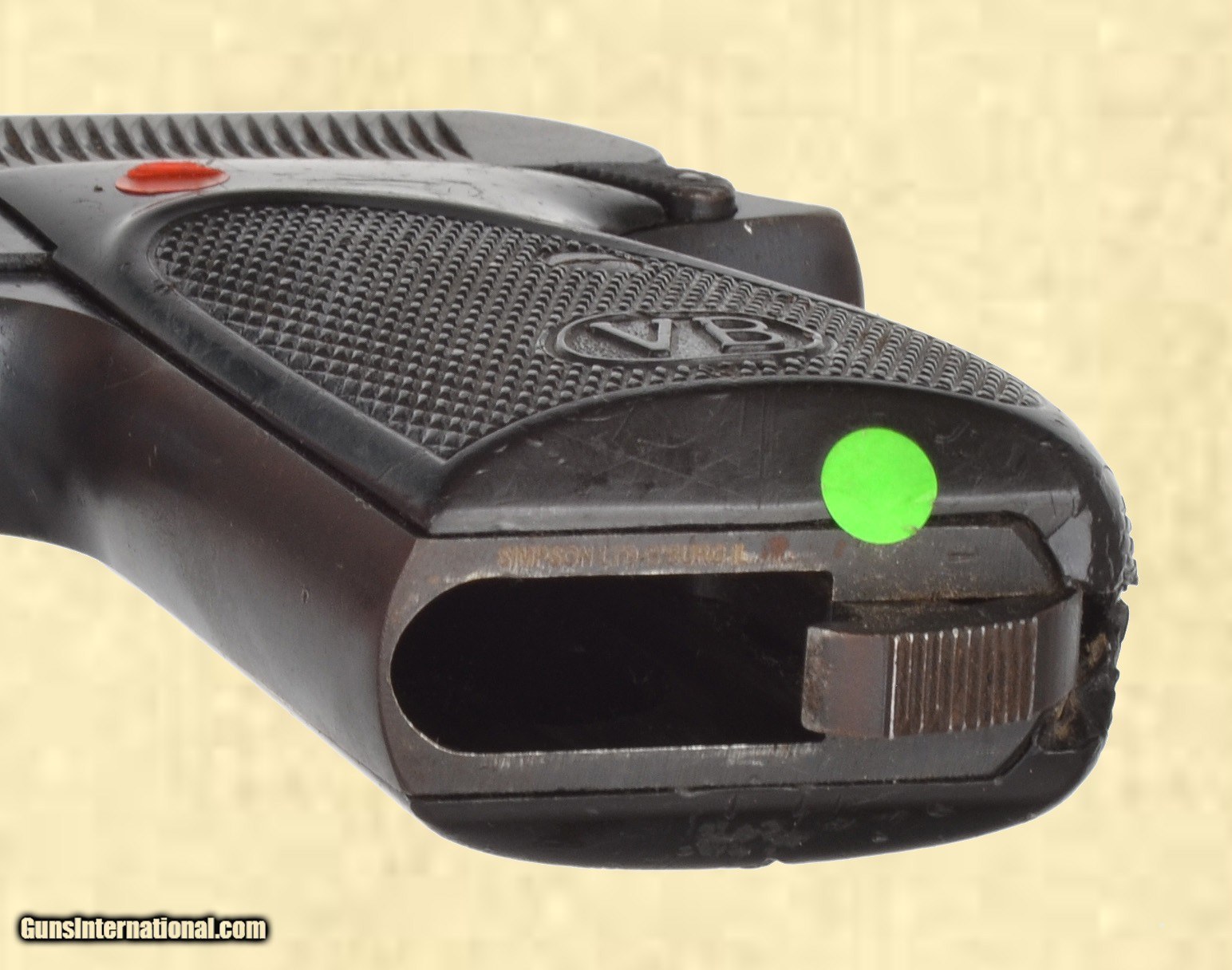 Description: 380 Cal; 85% blue, very good bore, good stock, 3 1/2'' barrel, The Bernardelli Model 60 is a popular blowback type pocket pistol produced during the 1950's & 60's. The Model 60 morphed into the Model 80 after the GCA of 1968, the only differences are a thumb rest grips and adjustable sights to win the necessary points for importation. Note a small chip in the grips by the magazine release. Mechanically, this pistol functions just fine. Please call (309)342-5800 Tues-Fri, 10 am -6pm (CST), or Sat 1pm-6pm (CST), to speak with our sales team for further information, or to purchase firearms. FEDERAL FIREARMS LICENSE (FFL): is required on all shipments of modern guns. We must wait for a copy from your dealer before we can ship to them. We will also ship C&R eligible firearms to Curio and Relic (C&R) license holders. We accept your signed, legible FFL and C&R licenses via fax at 309/ 342-5730 (always on), email at FFLsimpsonltd or through the mail at Simpson Ltd; 140 S Seminary St; Galesburg, IL 61401. Pre-1898 firearms and non-firearms items are exempt from licensing requirements. All items shipped to an Illinois address will be charged 8.75% sales tax. NOTE: Because of recent shipping restrictions and charges placed on us by UPS and FedEx (handguns must ship via next day or 2nd day air and they have added a $10 surcharge for parcels over 48”. Our return policy lasts a maximum of 3 days from the time you receive your item. If 3 days have passed since you received your purchase, and we have not been contacted by you, unfortunately, we can’t offer you a refund or exchange. If you are not happy with your purchase, please contact us by phone and/or email to arrange for a return. Items must be shipped back to us to arrive with 7 days of notification of return. LAYAWAY POLICY: We are willing to put items on layaway for you under the following conditions: The item must be priced at $500 or more with a 20% minimum deposit and must be paid off within 30 days. You may have a maximum of 2 items on layaway at one time. If the balance is not paid off within the 30 day period, all deposits and payments will be forfeited and not returned or applied to another item. SOLD Serial Number: 14799 |