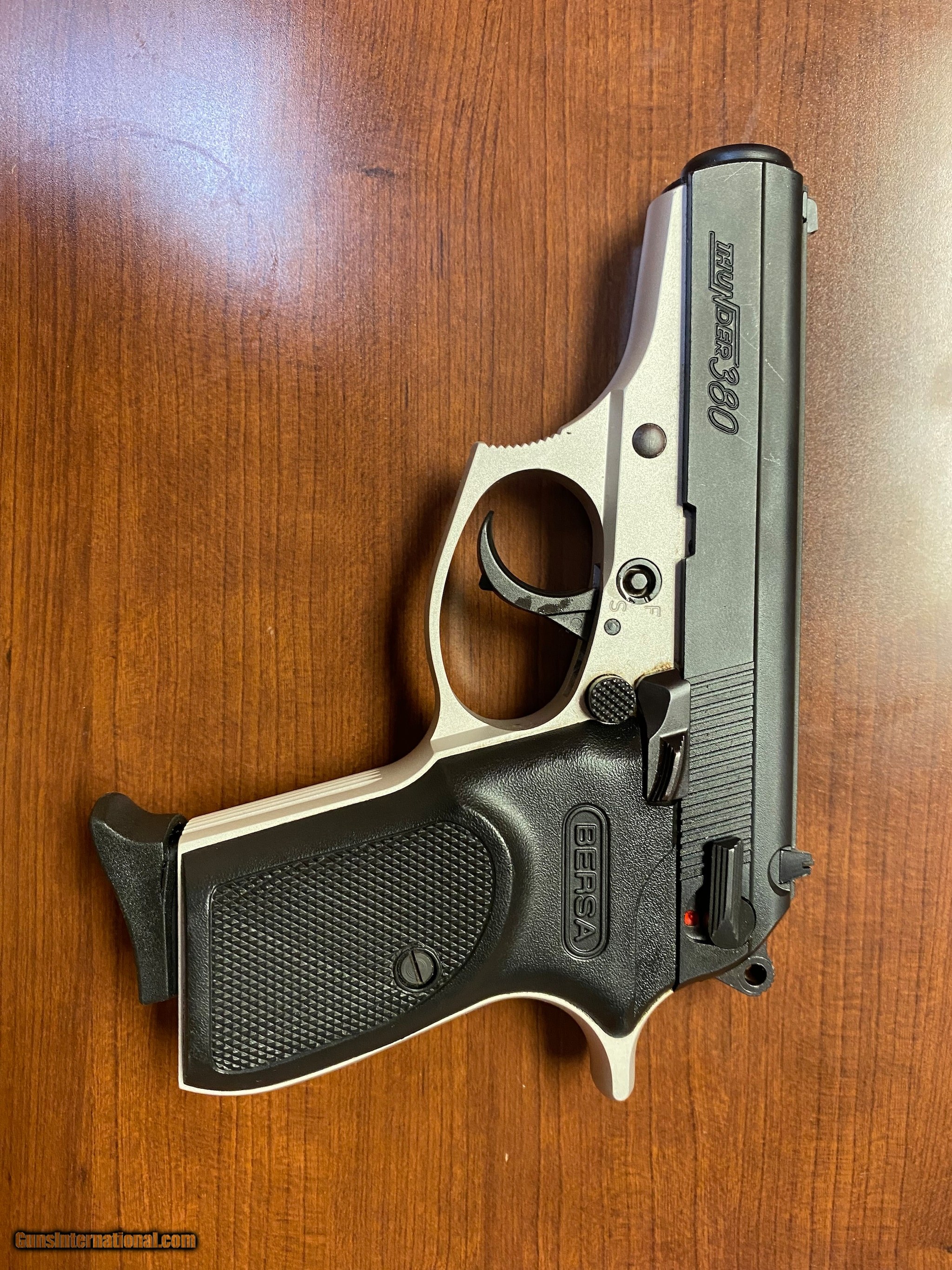 Description: Guns Listing ID: 956246 Bersa Thunder 380 pistol, comes with single magazine holds 8 rounds as well as Bersa case. Overall in good condition SOLD Manufacturer: BERSA Model: Bersa Thunder 380 Caliber Info: .380 ACP Condition: Used - Non-Certified Barrels: 3 BARREL Finish: BLACK & GREY |