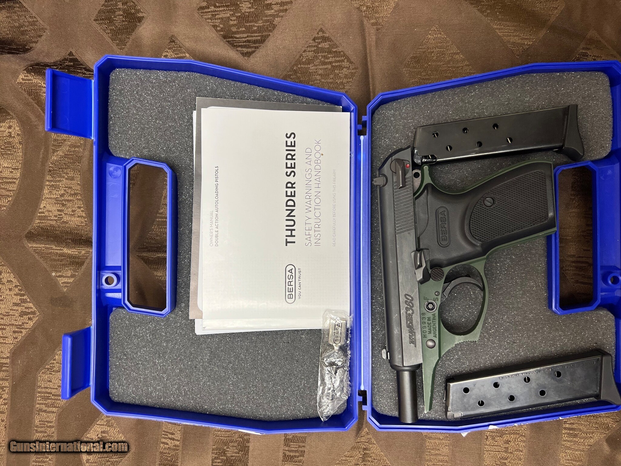 Description: Guns Listing ID: 1069912 Bersa Thunder .380 ACP pistol, comes with original case and one extra magazine. SOLD Manufacturer: BERSA Model: Bersa Thunder 380 Caliber Info: .380 ACP Condition: Used - Non-Certified Barrels: 3 BARREL Finish: BLACK & GREEN |
