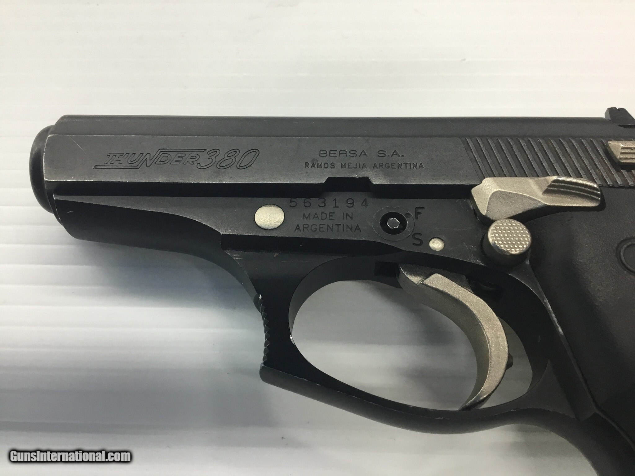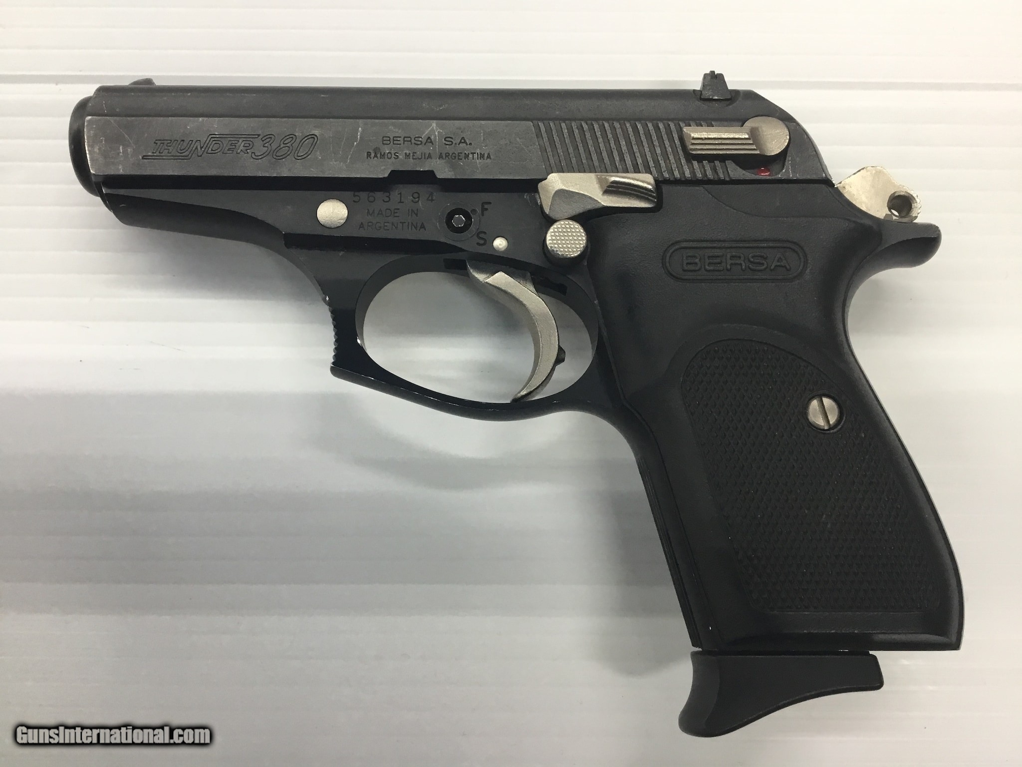 Description: Guns Listing ID: 1116752 Bersa Thunder 380 pistol with 1 magazine SOLD Manufacturer: BERSA Model: Bersa Thunder 380 Caliber Info: .380 ACP Condition: Used - Non-Certified Barrels: 3 BARREL Finish: BLACK GREY CAMO |