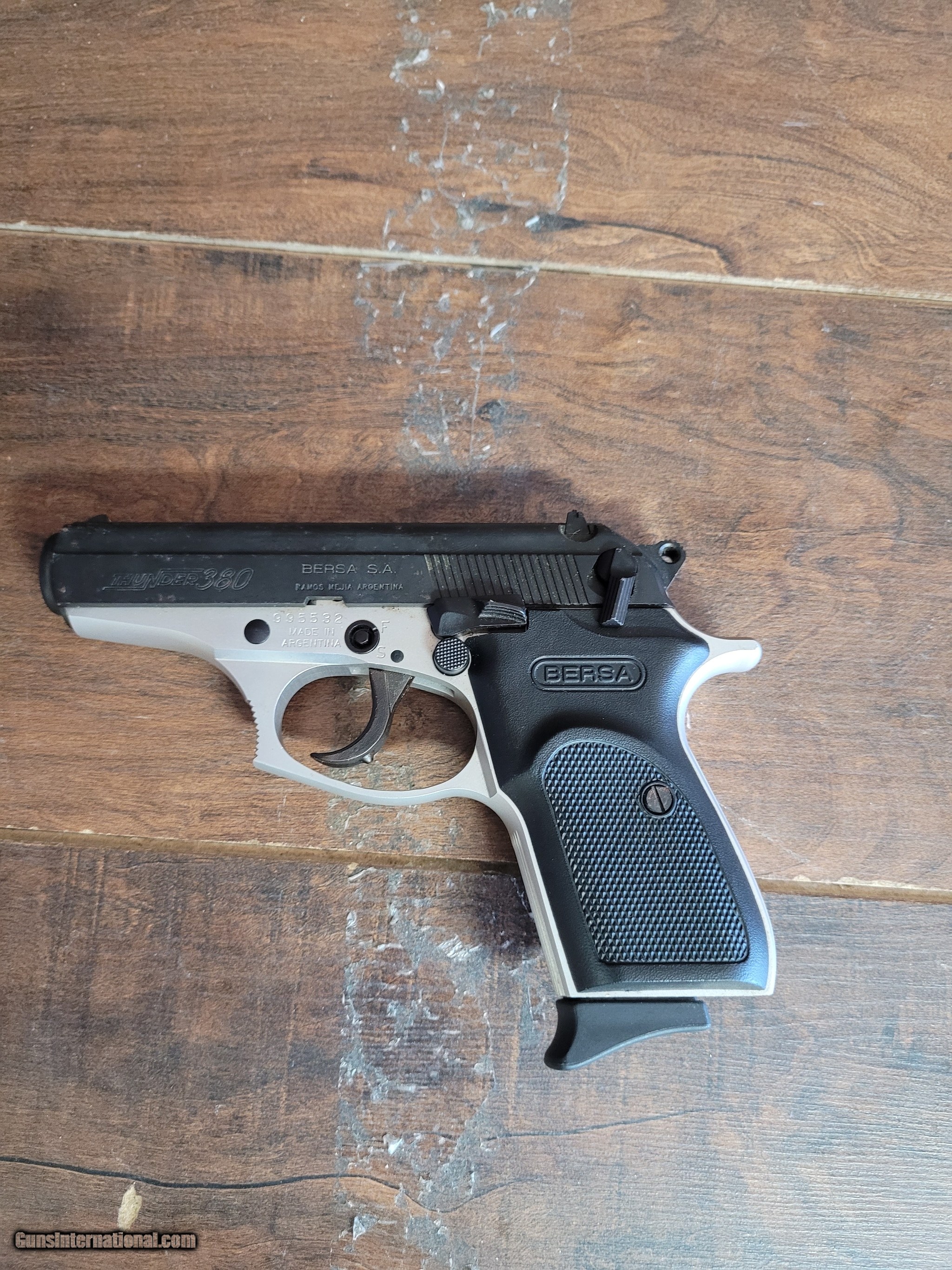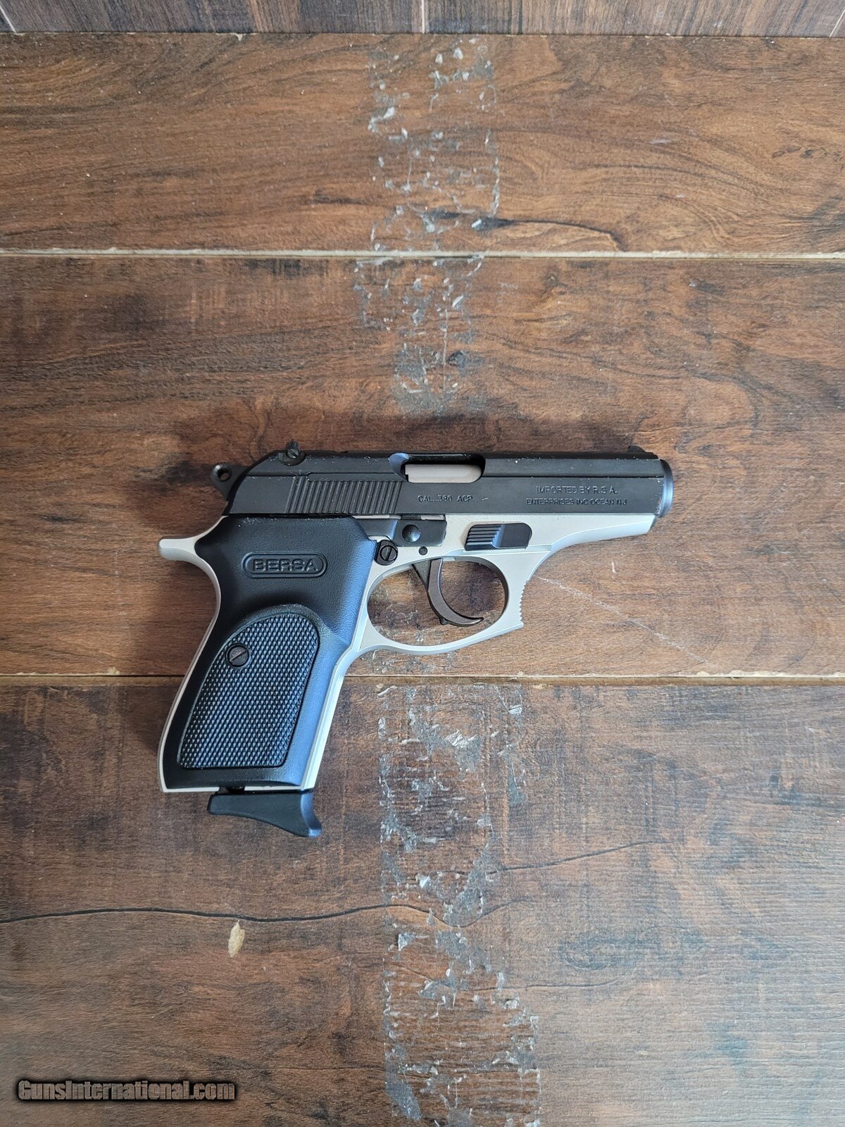 Description: Guns Listing ID: 815247 Great Carry handgun.Normal wear, andsome stock and wear finish. Minimal pitting on the black slide. SOLD Manufacturer: BERSA Model: Bersa Thunder 380 Caliber Info: .380 ACP Condition: Used - Non-Certified Barrels: 4 BARREL Finish: TWO TONE. BLACK/SILVER |