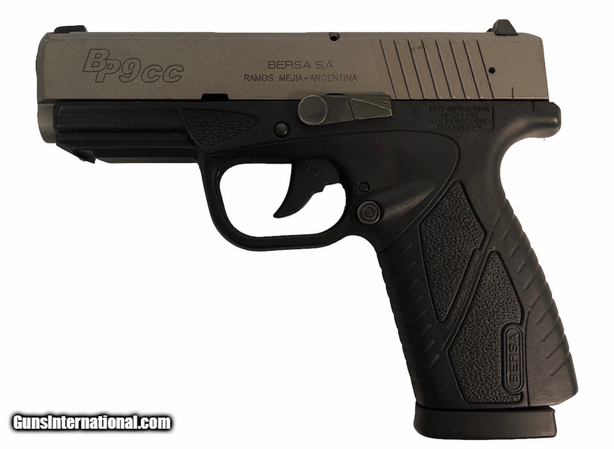 Description: Guns Listing ID: 667796 Manufacturer: Bersa Importer: Bersa Model: BP9CC Type: Handgun Action Type: Semi-Automatic Caliber / Gauge: 9 MM Finish: Satin Barrel Type: Single Grip Type: Polymer Barrel Length: 3.5 Magazine Capacity: 7 Magazine Quantity: 1 Case included: yes Condition: Used SOLD Manufacturer: BERSA Model: BP9CC Caliber Info: 9 MM Condition: Used - Non-Certified Barrels: 3.5 BARREL Finish: SATIN |