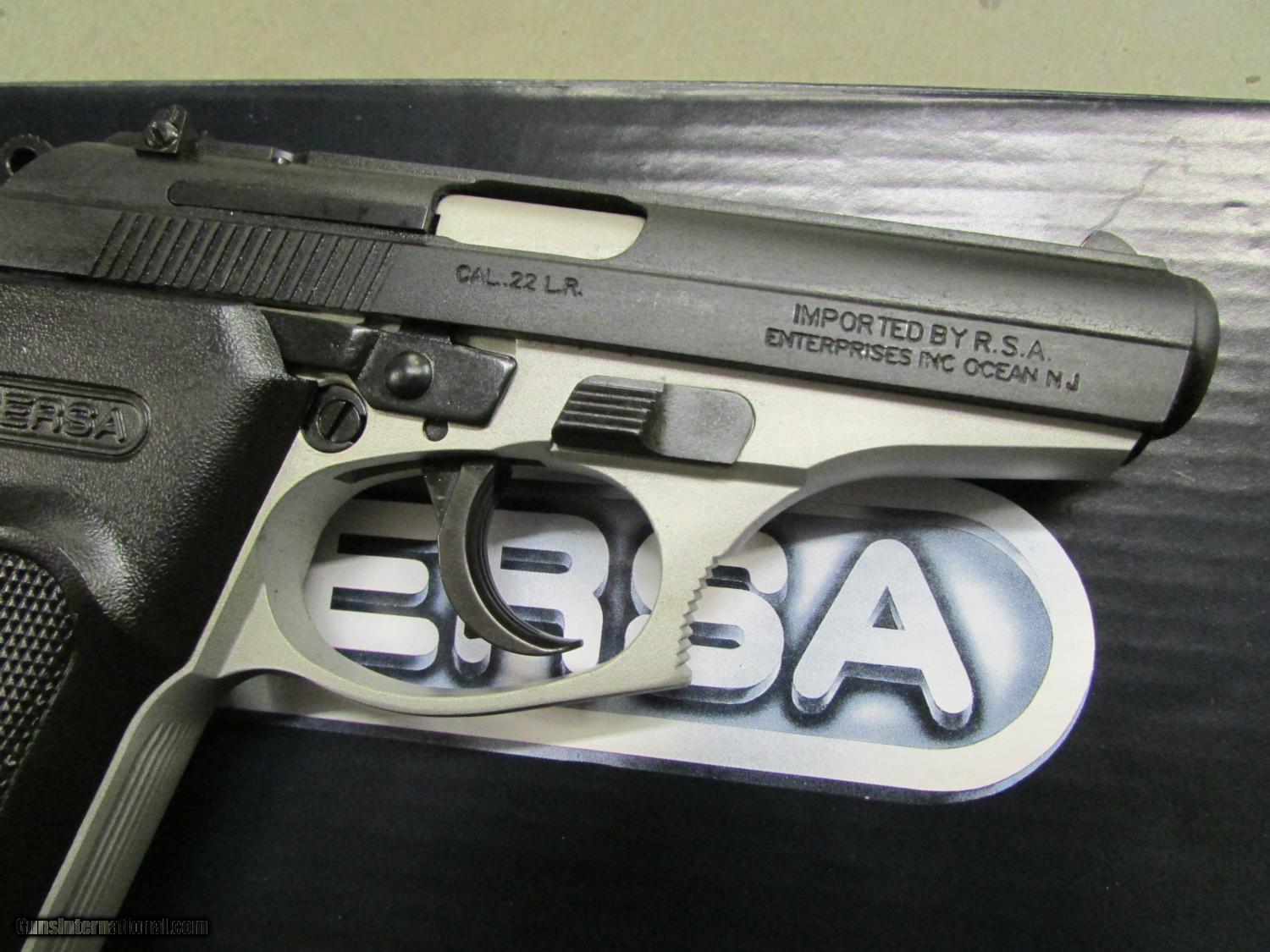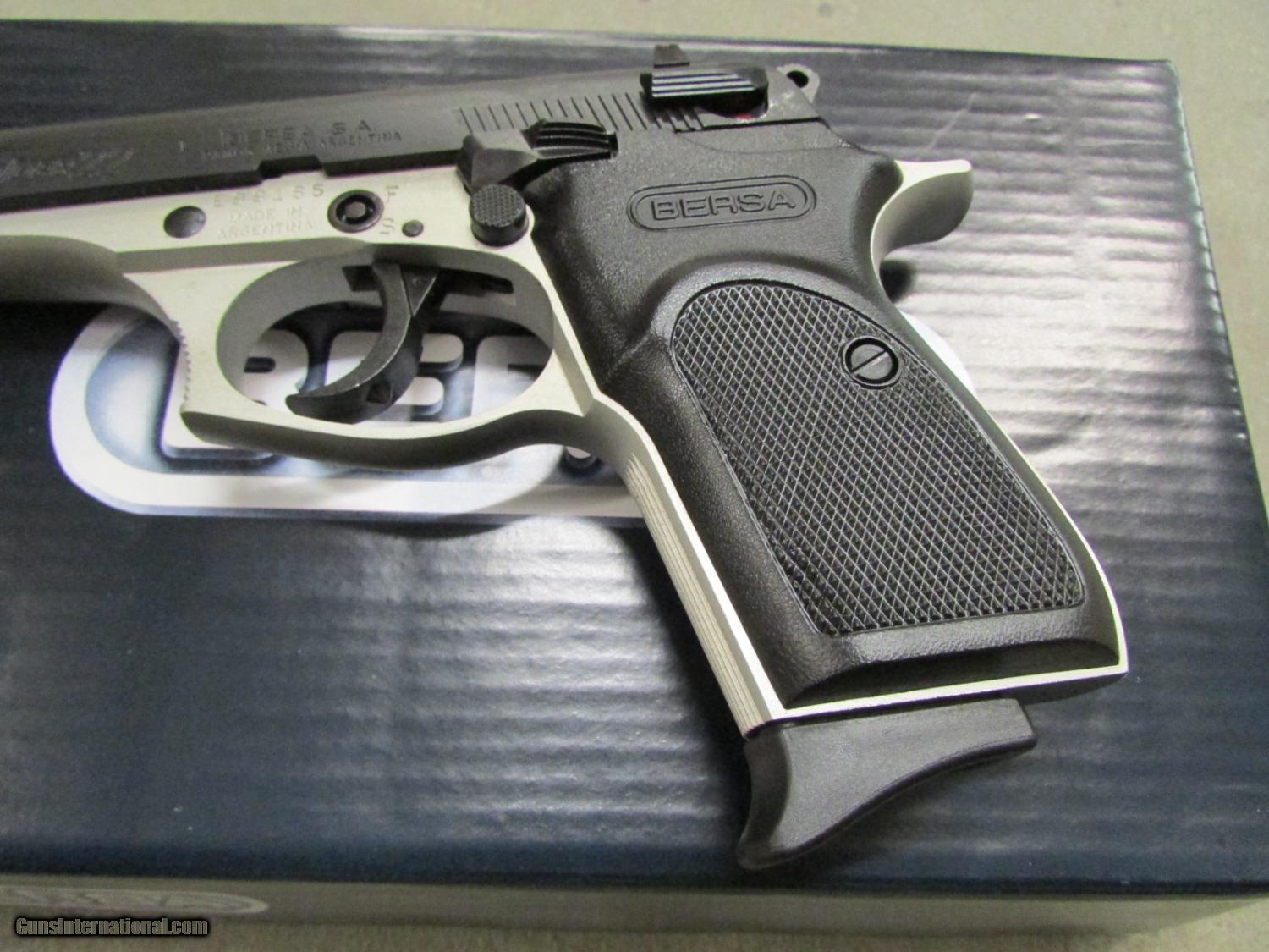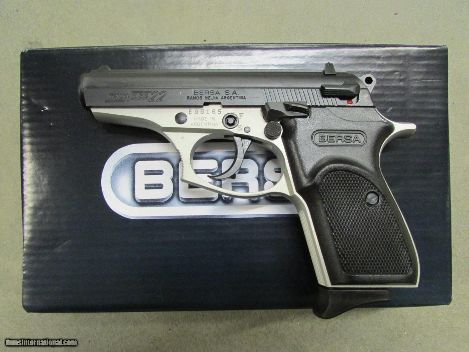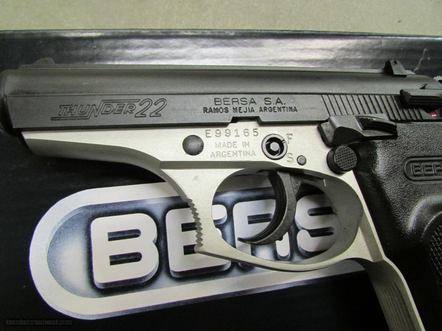 Description: Brand new in the box, ready to ship. Buy it now!! BERSA THUNDER .22 DETAILS (FOR MORE MODEL SPECIFIC DETAILS, PLEASE SCROLL DOWN AND CLICK ON THE FIREARM) The Thunder .22 is BERSA’s smallest caliber semi-automatic handgun. Made with the same care and attention to detail as all BERSAS®, this lightweight, low recoil shooter is an asset to anyone’s gun collection. Important features like comfort, accuracy, durability and reliability will be found in this .22 LR handgun. For anyone needing practice to maintain proficiency or simply to have fun plinking, the Thunder .22 is economical to shoot - an important consideration with high ammunition prices. The Thunder .22 has trained generations of professional and sport shooters alike. Please note: The Thunder .22 pistol is designed to support hyper-speed or high velocity ammo. Caliber: .22 LR Action: DA/SA Capacity: 10+1 (.22) Barrel Length: 3.5" Front Sight: Blade Integral with Slide Rear Sight: Notched-Bar Dovetailed Finish: Duotone, Matte Black, Satin Nickel Grips: Checkered Polymer Construction: Alloy Frame / Steel Slide Safety: Intergal Locking System, Manual, Firing Pin Weight: 18.90 (.22) Length: 6.6" Height: 4.7" Width: 1.3" Shipping to Lower 48 Only, Shipping $30.00, KNOW YOUR LOCAL AND STATE LAWS!! SOLD |